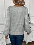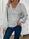 Lantern Sleeve V Neck T-shirt, Elegant Solid Color Top