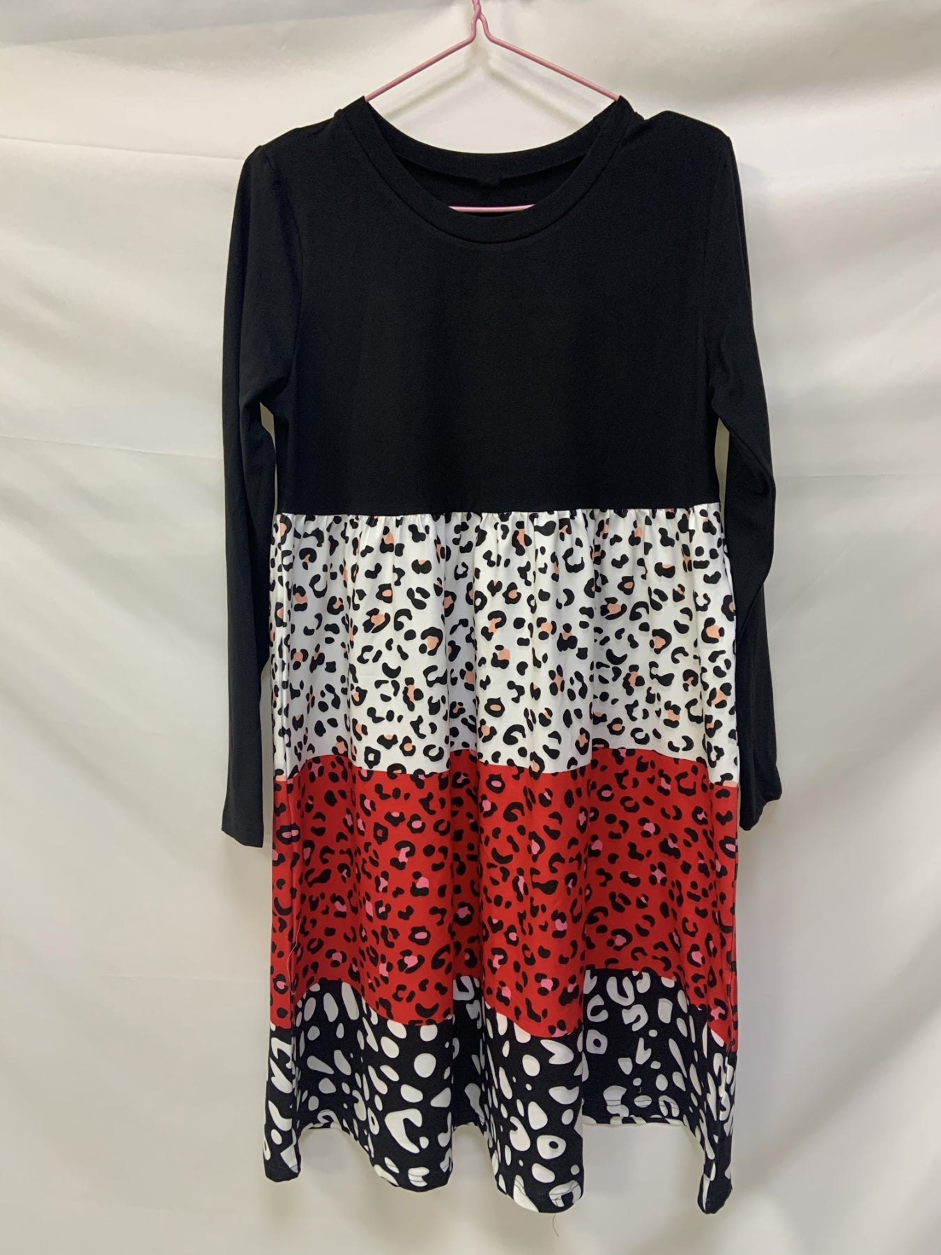 Sale Leopard Print Color Block Dress, Casual Crew Neck Long Sleeve Dress