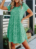Leopard Print Crew Neck Dress, Casual Short Sleeve Dress