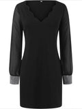 Long Sleeve Plain Jersey V Neck Daily Going Out Casual Midi Dress