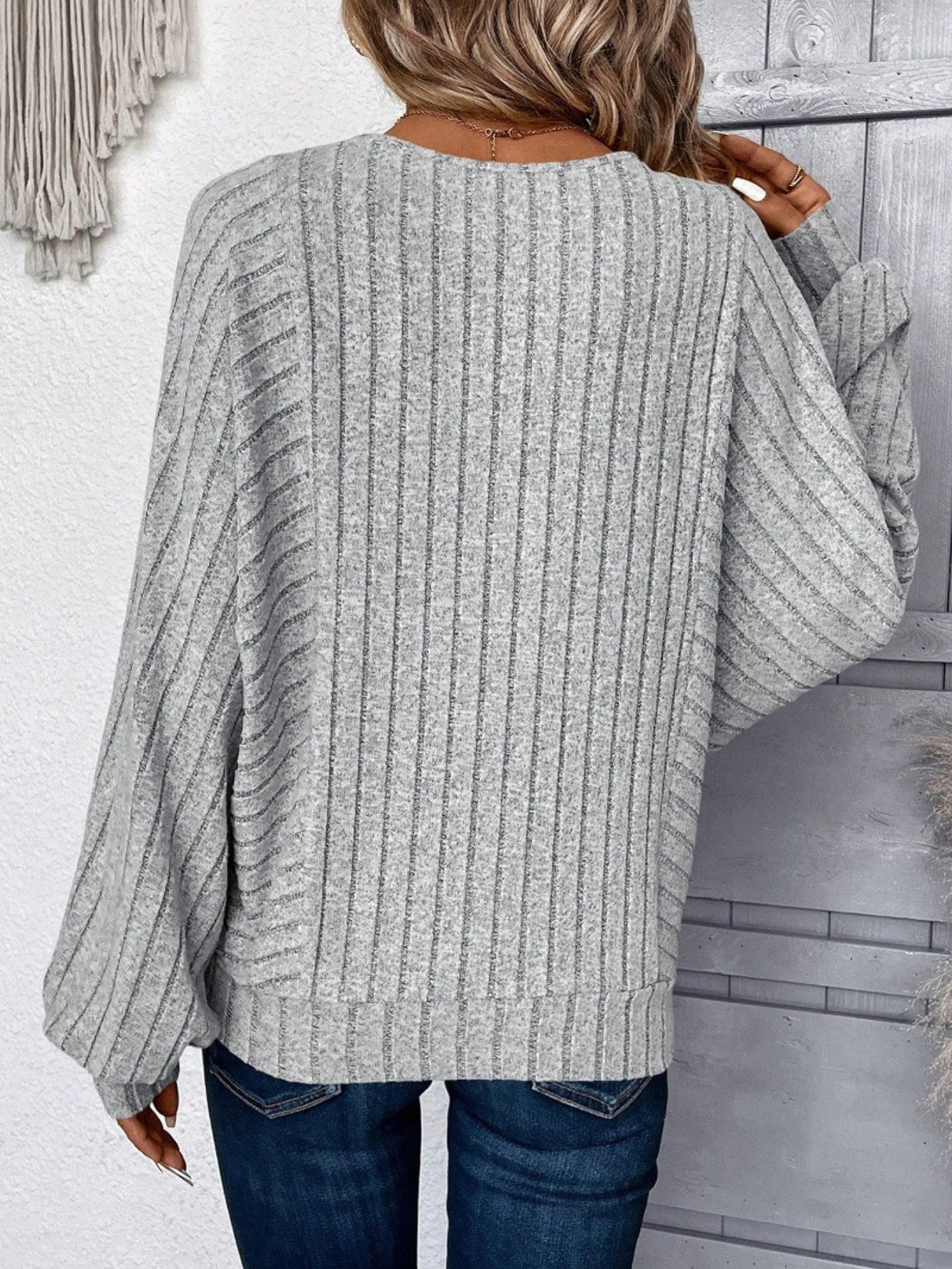 Long Sleeve Solid Color Ribbed Crew Neck Top for Women, Perfect, Casual Wear