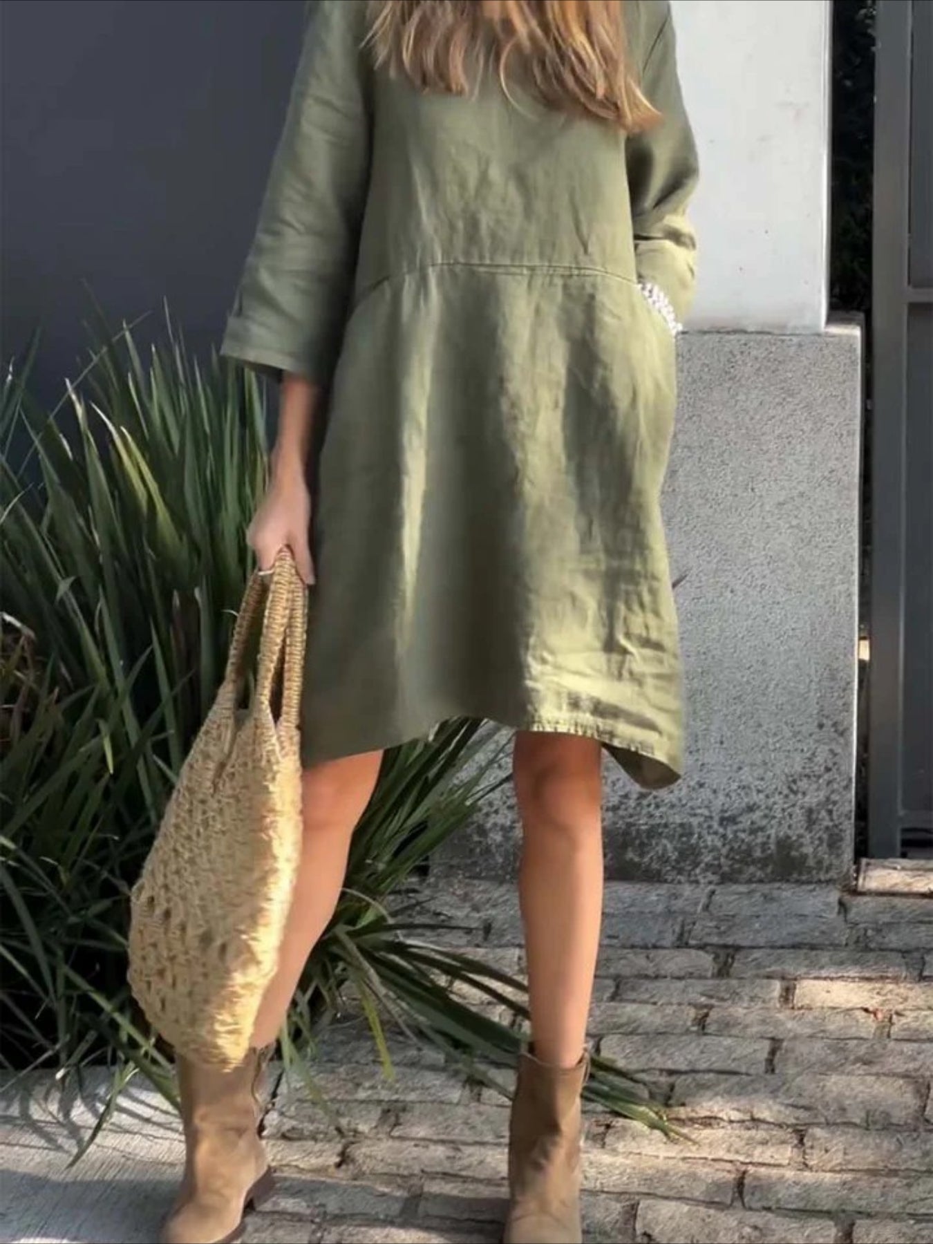Loose Casual Cotton And Linen Plain Sweashirt Dress
