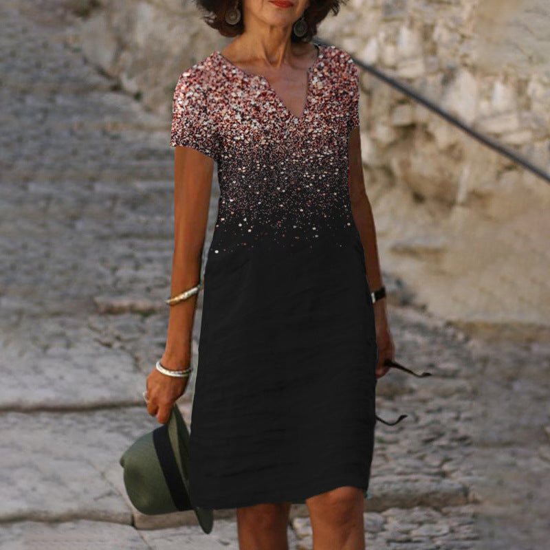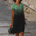 Loose Print Elegant V-neck Short Sleeve Knee-length Midi Dress