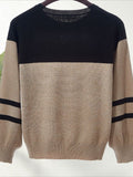 Sale Patchwork Striped Long Sleeve Round Neck Sweater