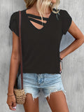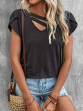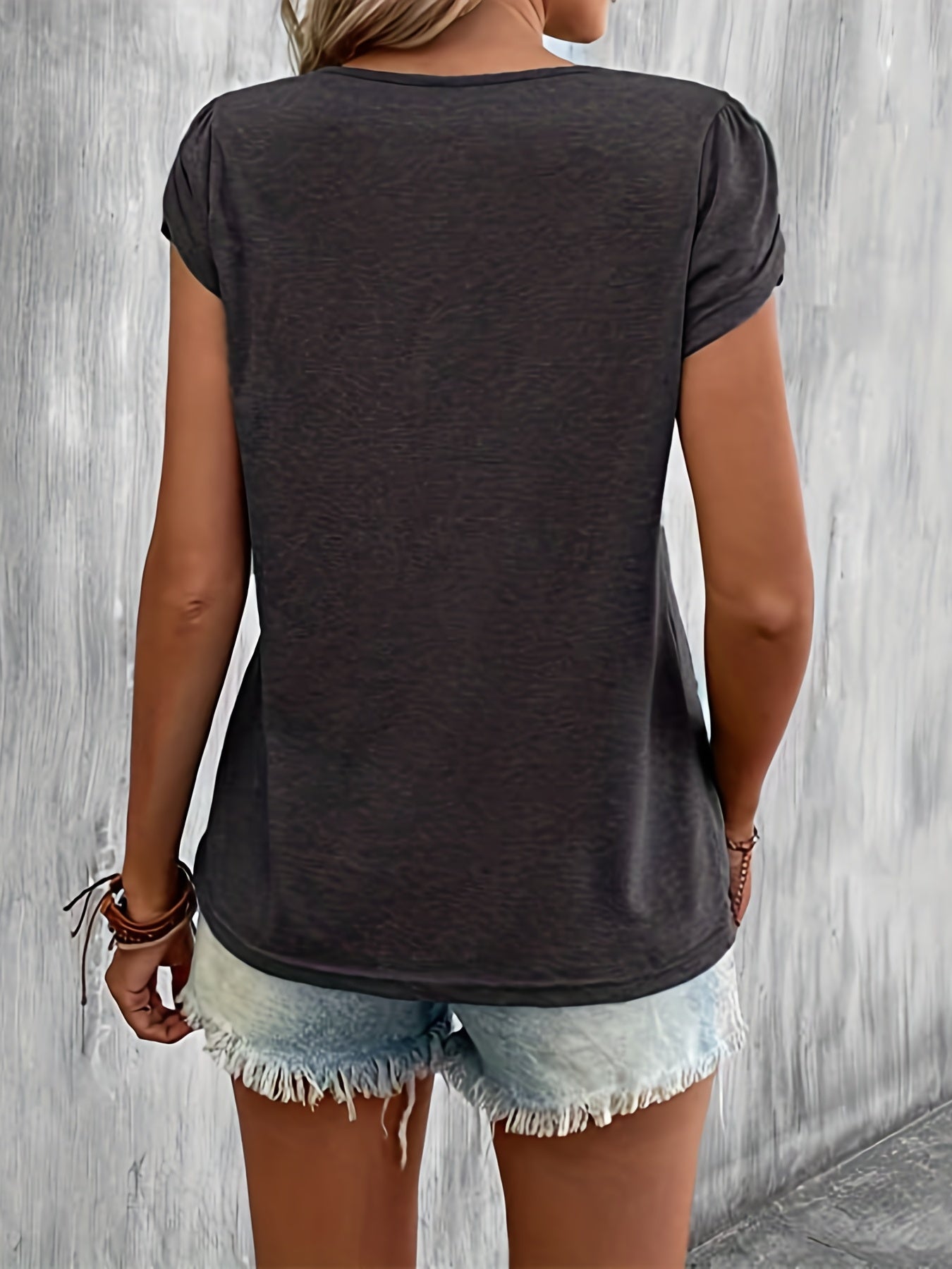 Petal Sleeve Loose T-Shirt, Short Sleeve Casual Top