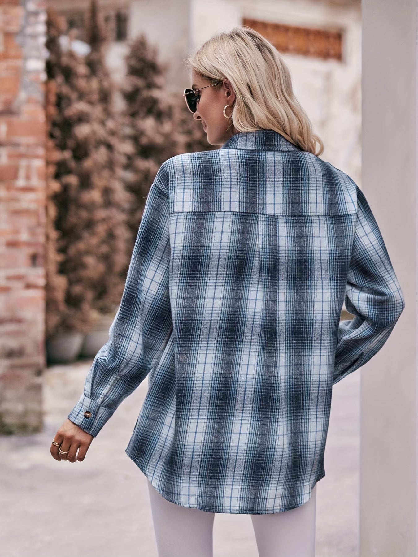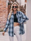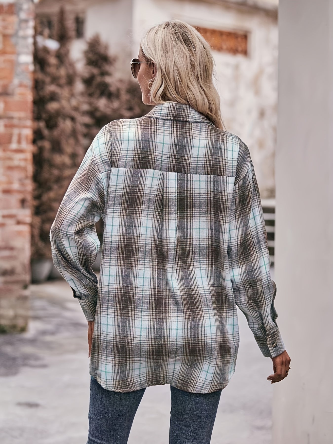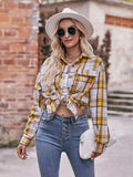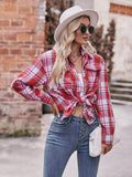 Plaid Print Polo Collar Button Shirt, Casual Long Sleeve Shirt