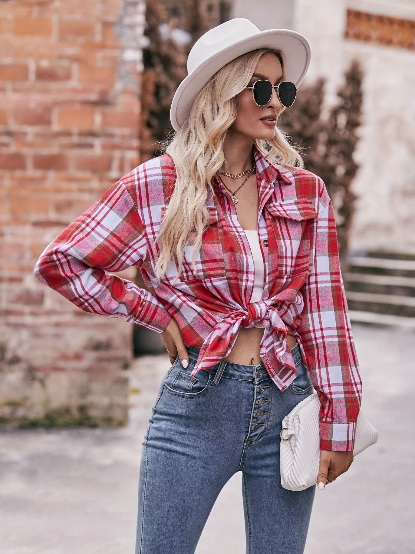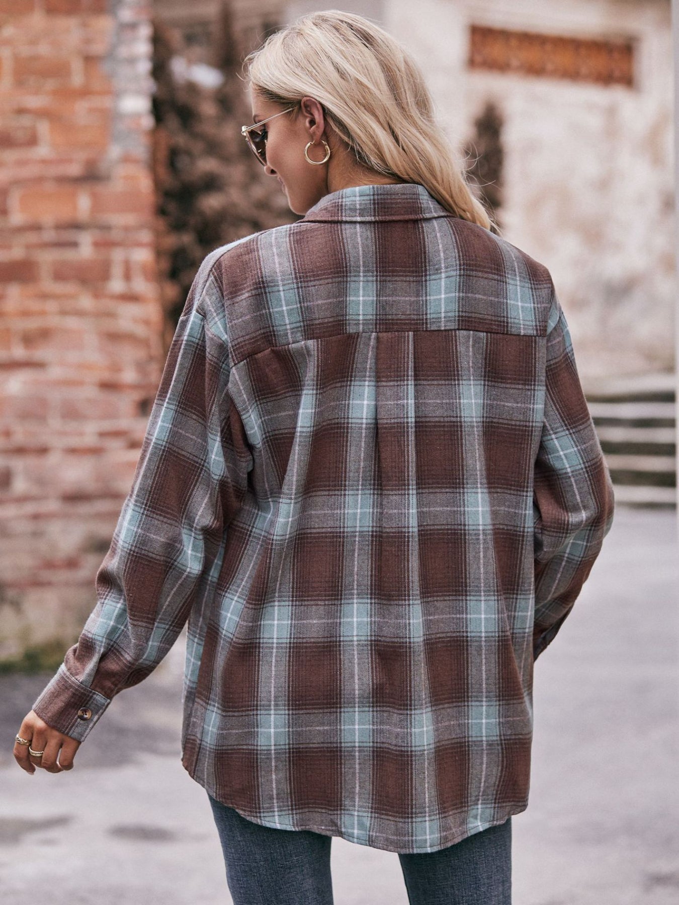 Sale Plaid Print Polo Collar Button Shirt, Casual Long Sleeve Shirt