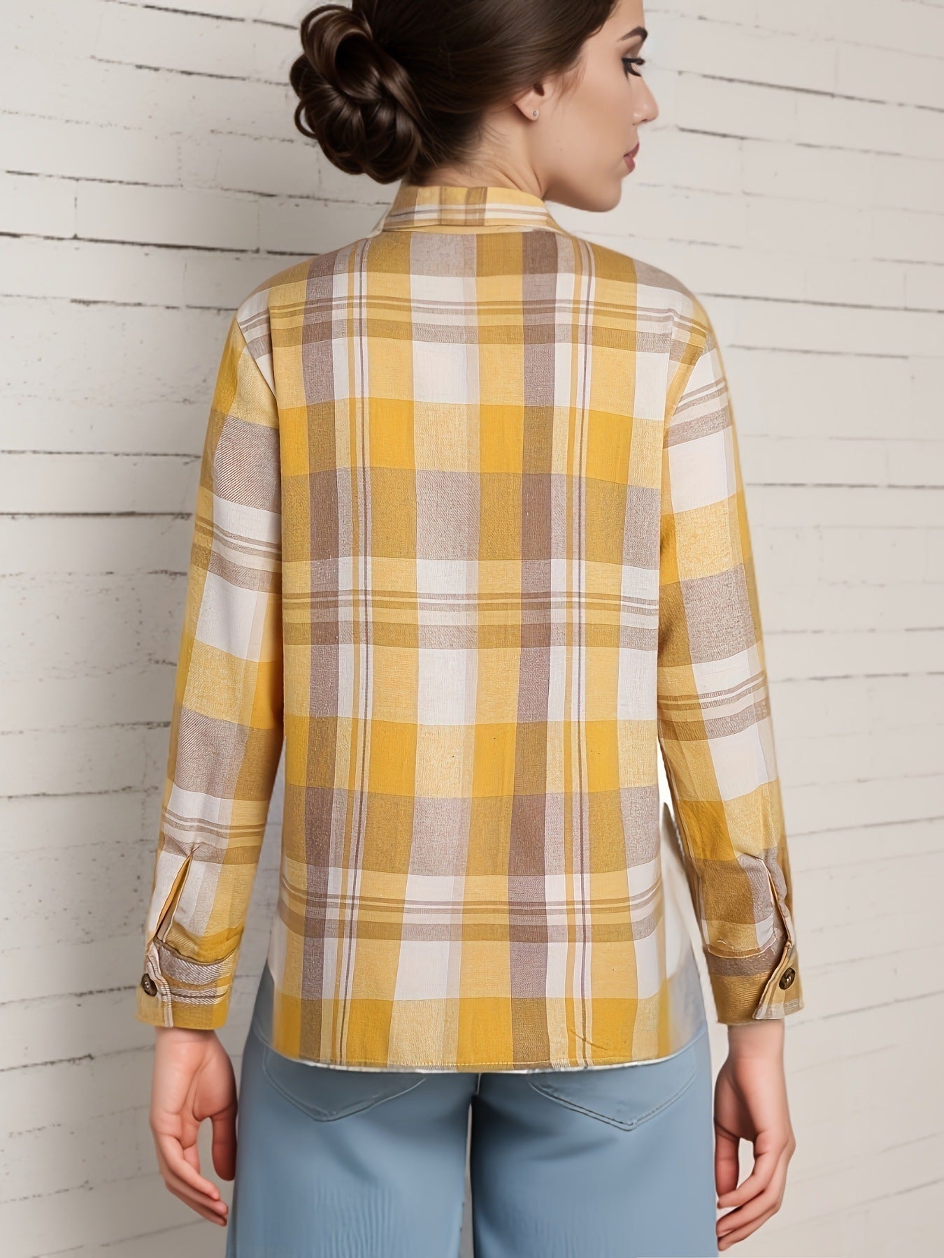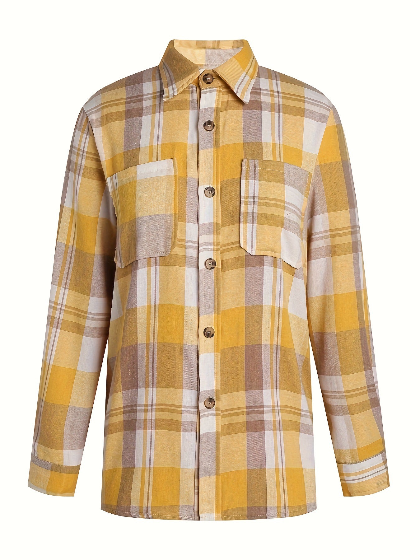 Plaid Print Simple Shirt, Casual Button Front Long Sleeve Shirt