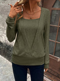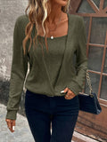 Plaid Spliced Square Neck Long Sleeve Color Block Top