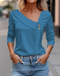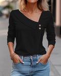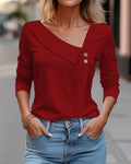 Sale Plain Button Long Sleeve Daily Weekend Vintage Fashion Basic V Neck T-Shirt