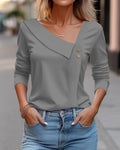 Plain Button Long Sleeve Daily Weekend Vintage Fashion Basic V Neck T-Shirt