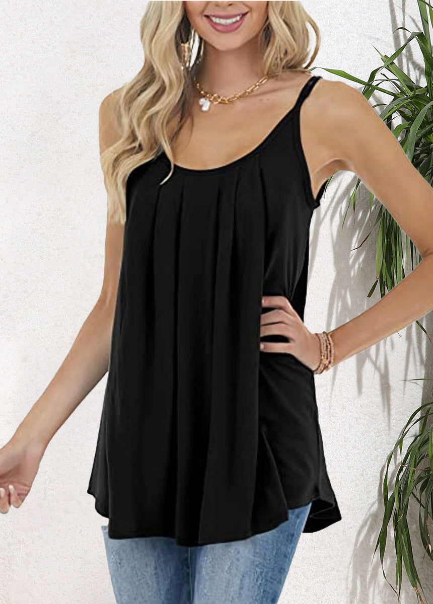 Sale Pleated Round Neck Keyhole Suspender Vest