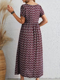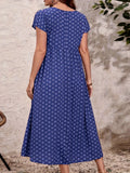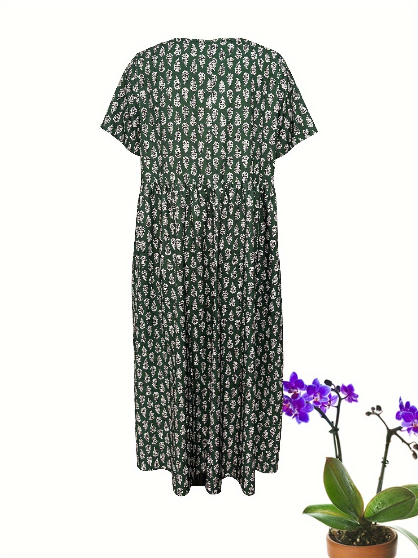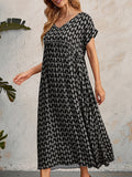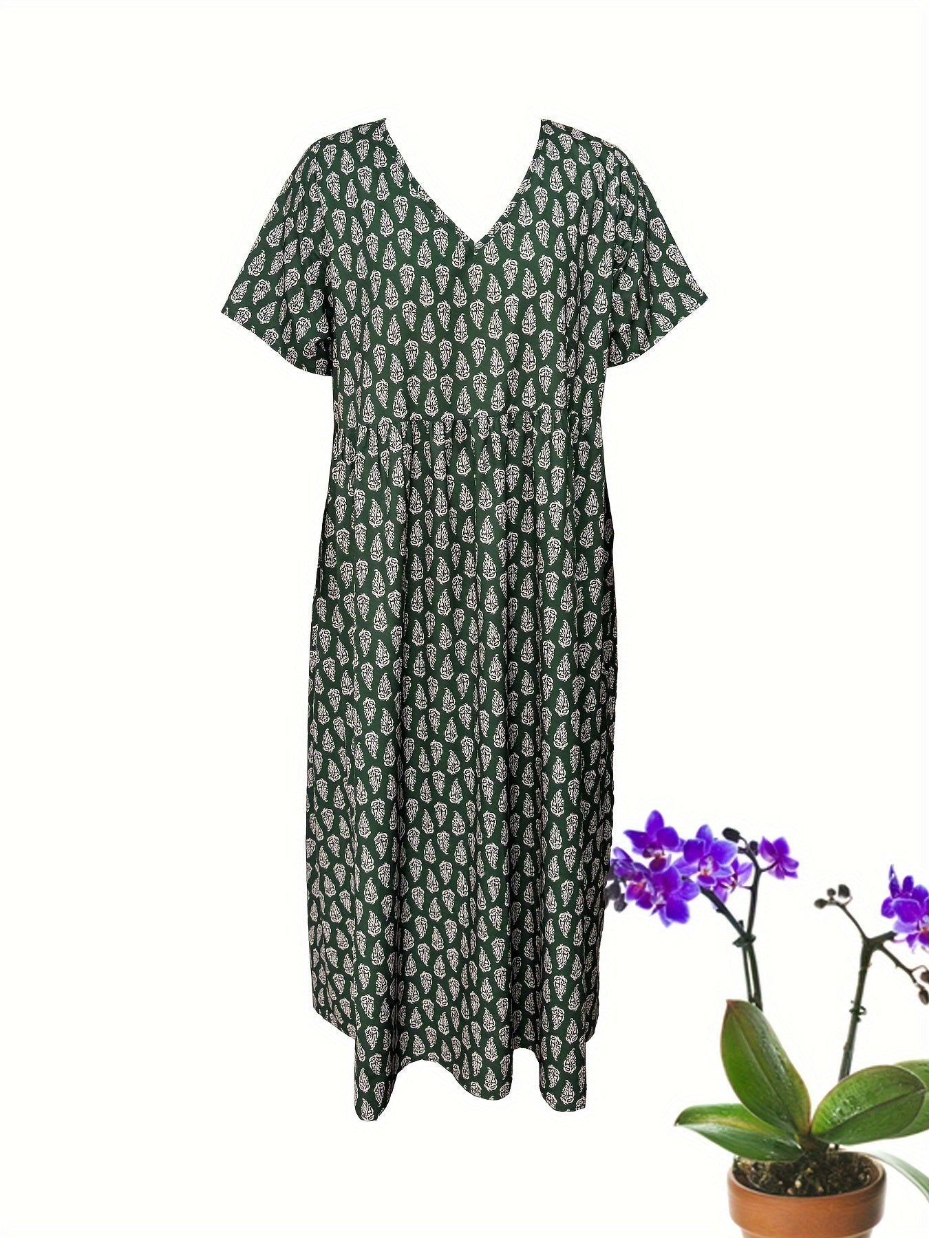 All Over Print Dress, Casual V Neck Short Sleeve Dress