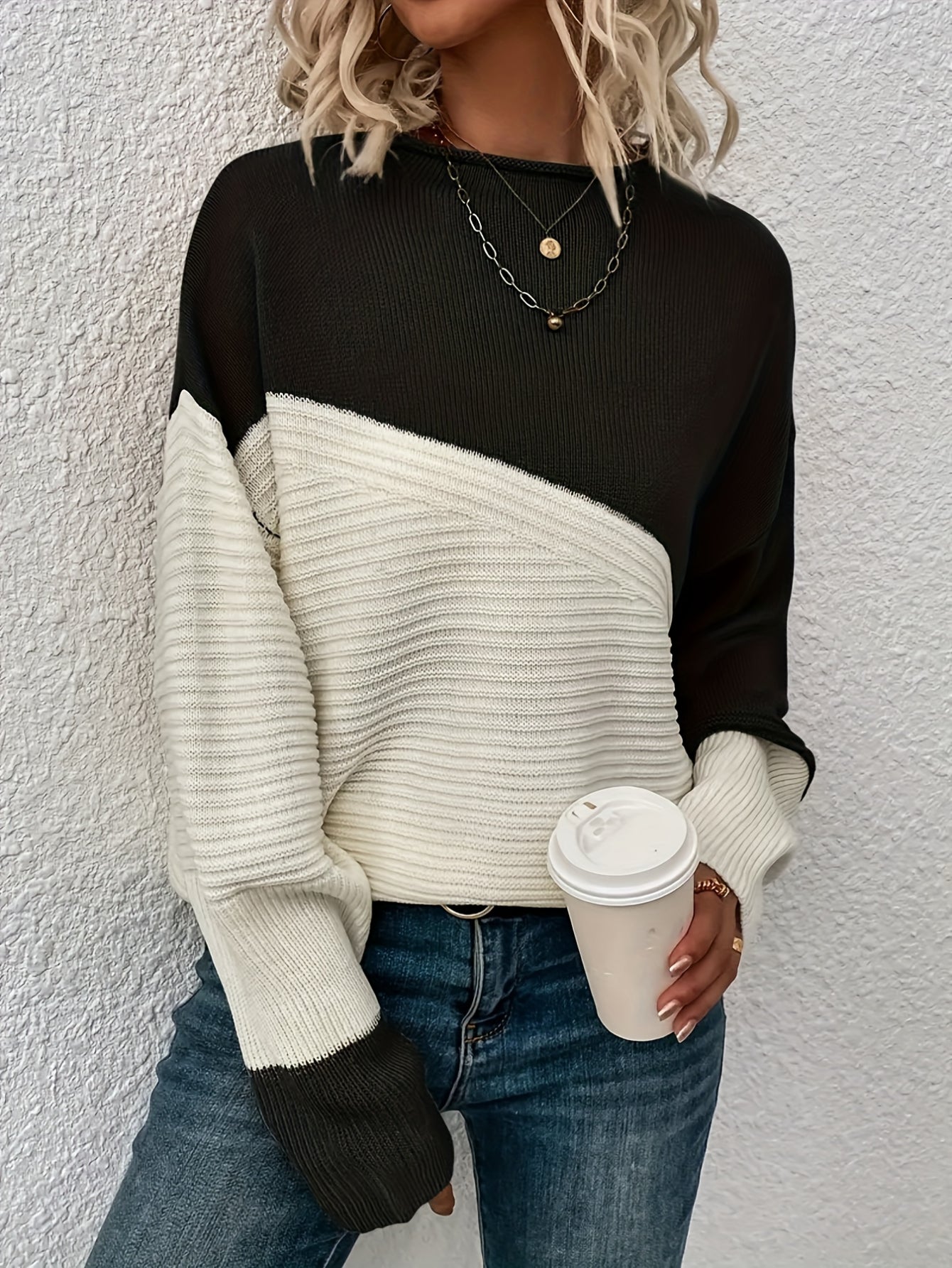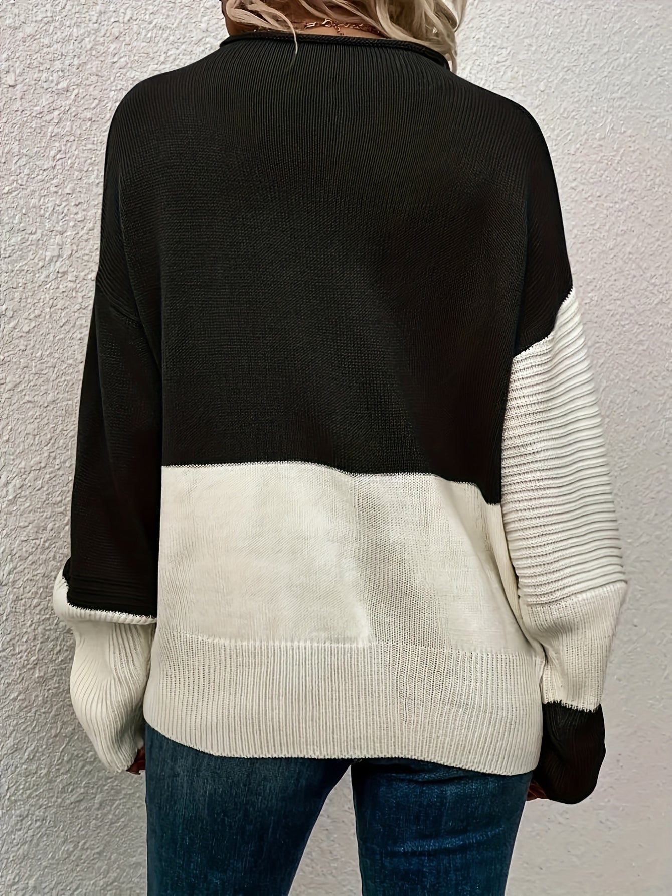 Casual Sweater, Women's Colorblock Long Sleeve Round Neck Jumper