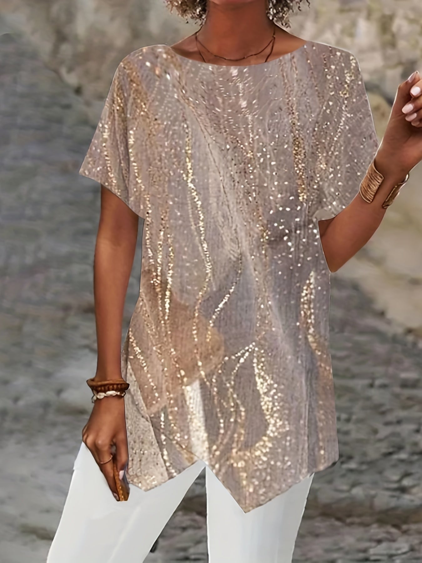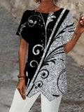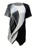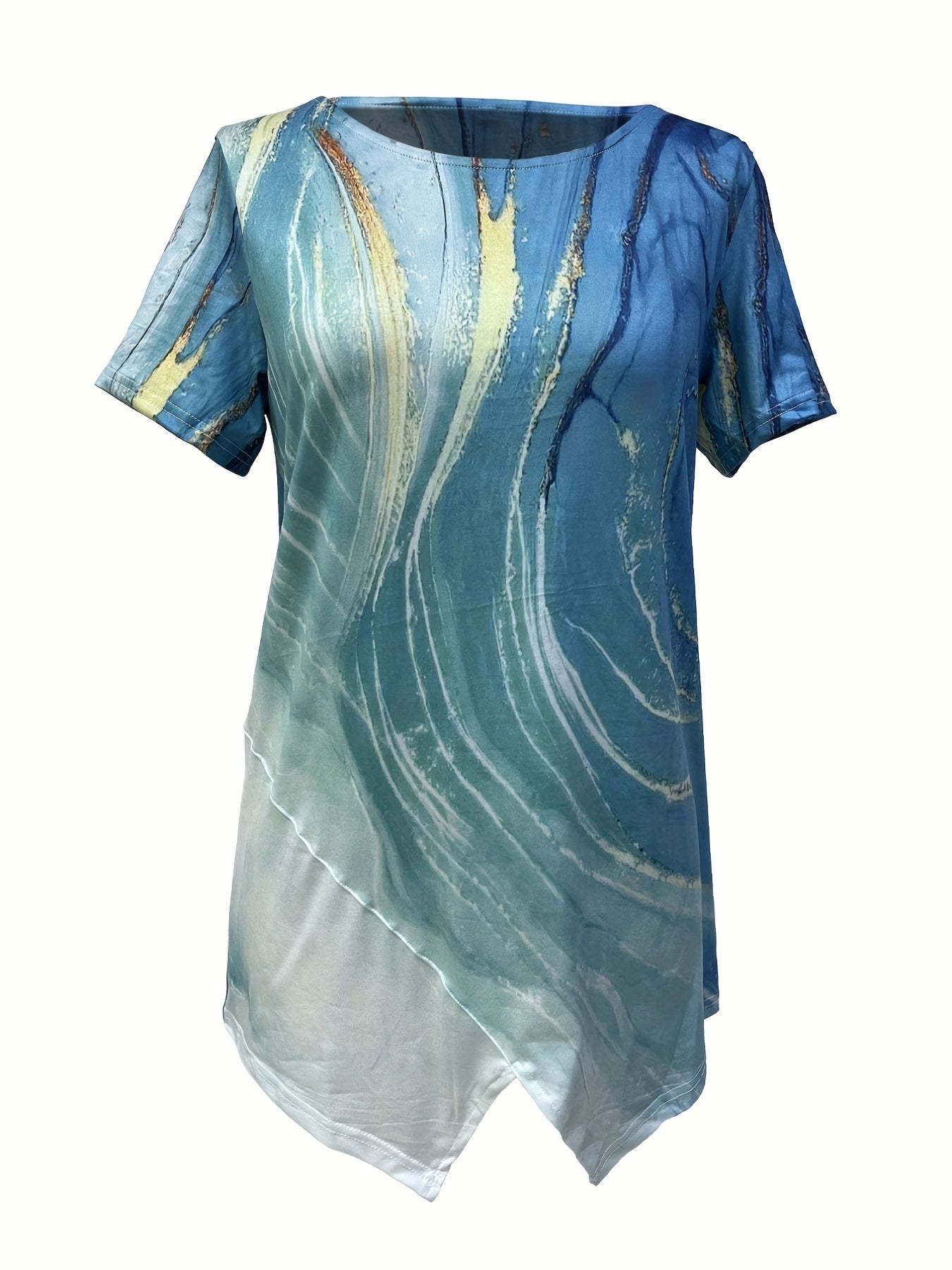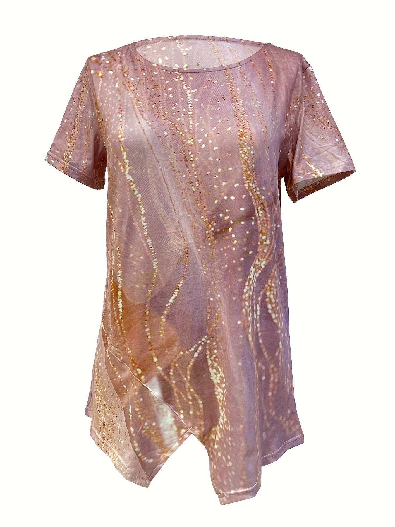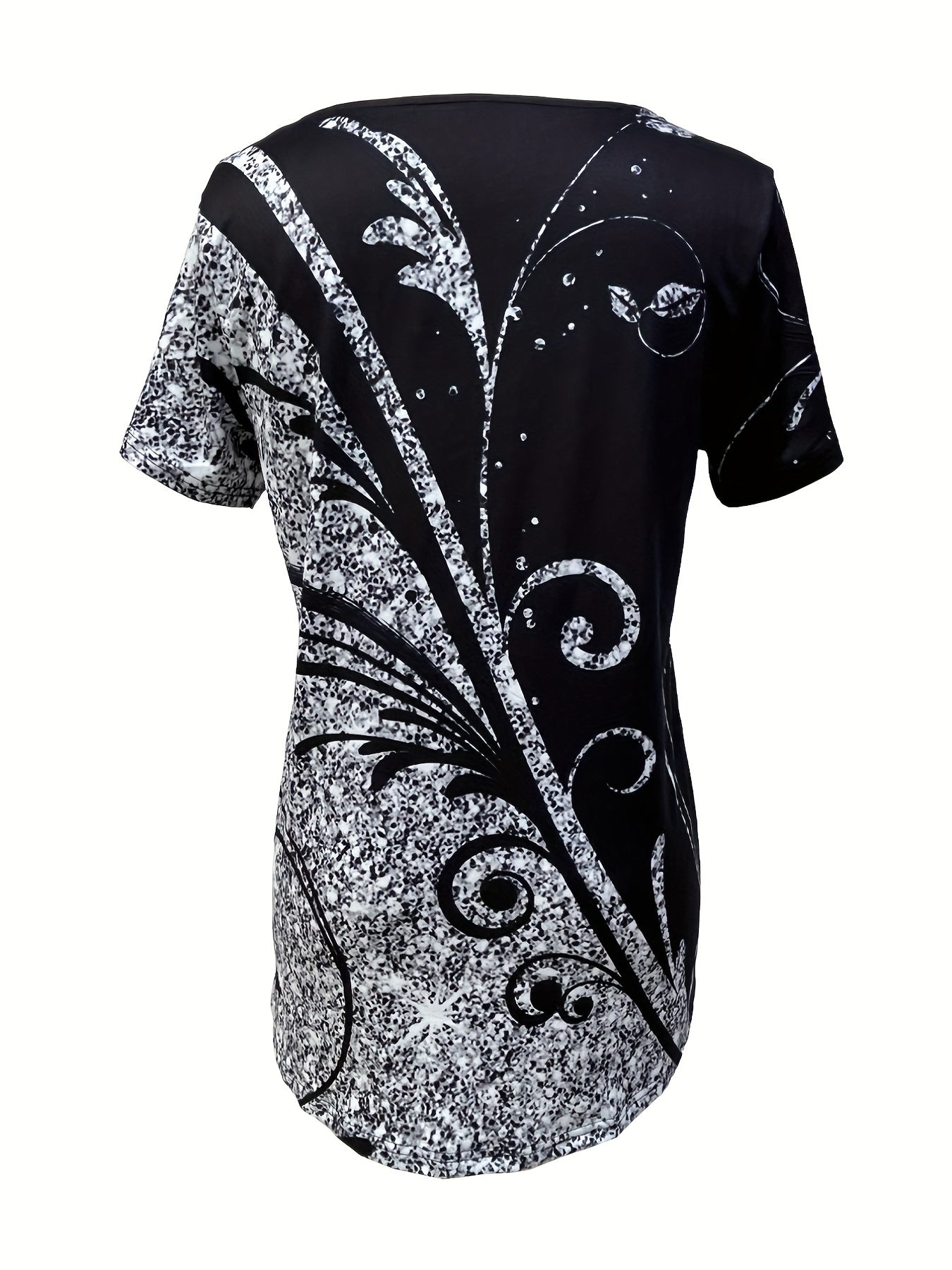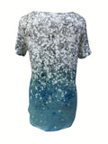 Casual T-shirt, Women's Allover Print Short Sleeve Round Neck Medium Stretch Tee