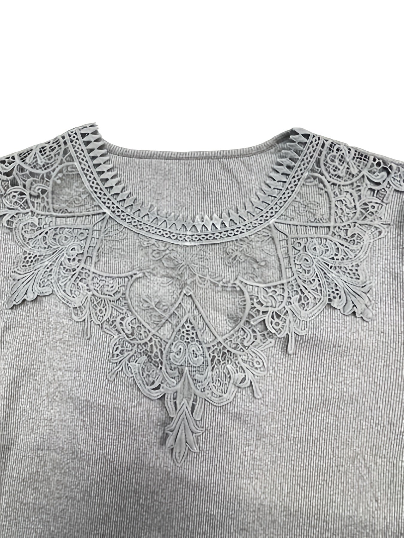 Sale Casual Top, Women's Solid Contrast Lace Bell Sleeve Round Neck Medium Stretch Top