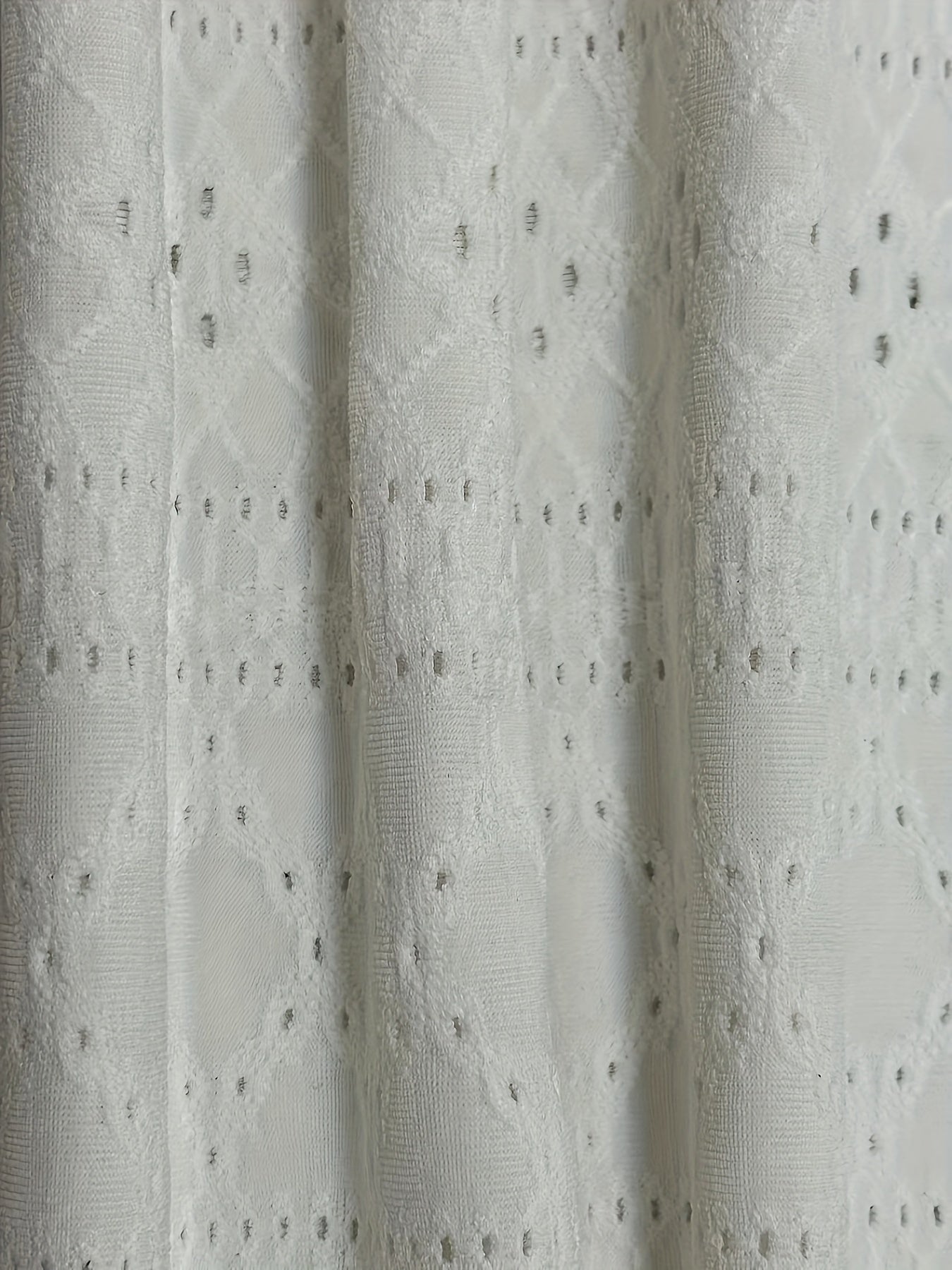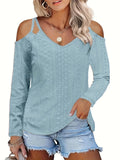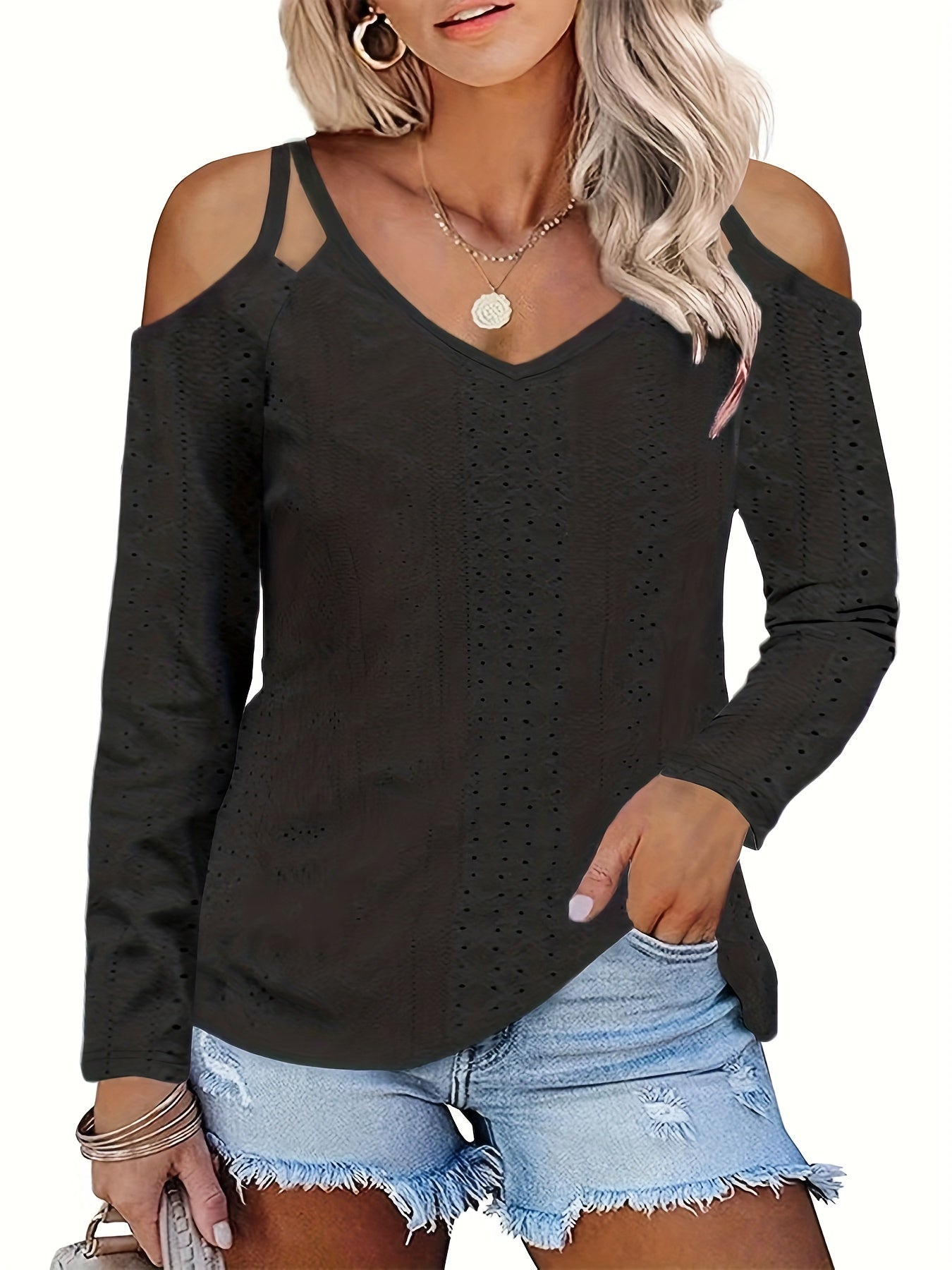 Casual Top, Women's Solid Eyelet Embroidered Cut Out Cold Shoulder Long Sleeve V Neck Top