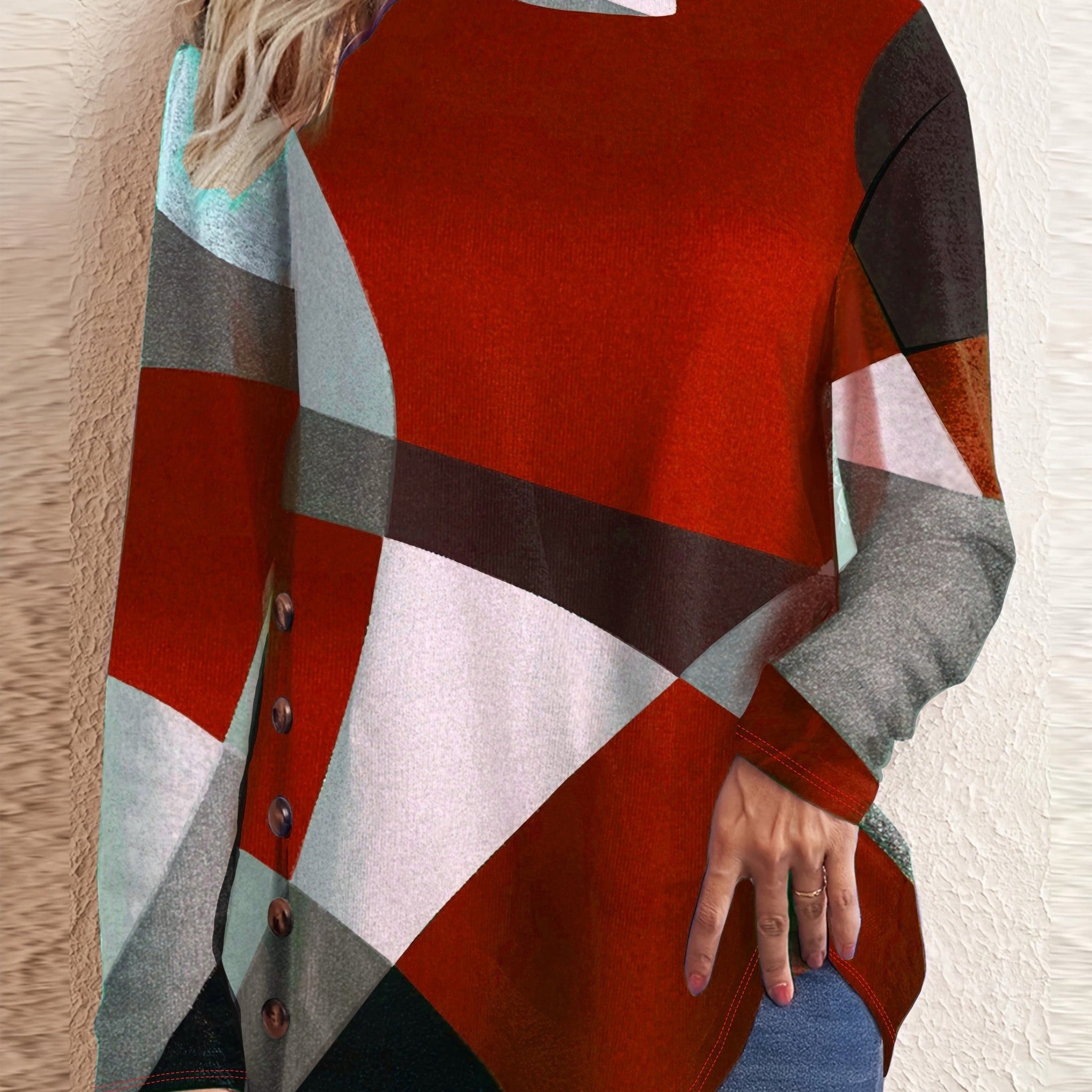 Sale Colorblock Long Sleeve T-shirt, Women's Casual Round Neck Slight Stretch Tee