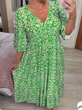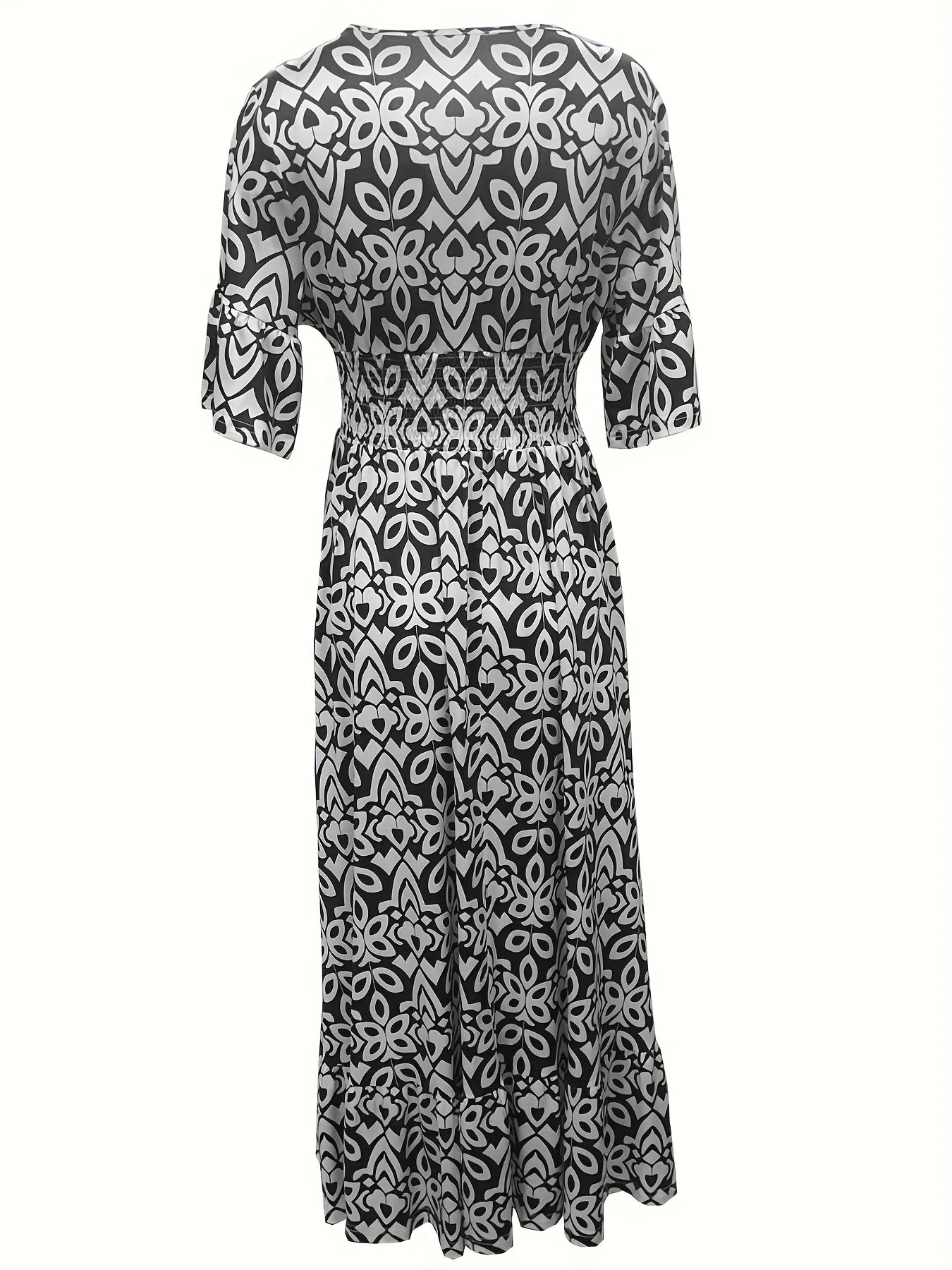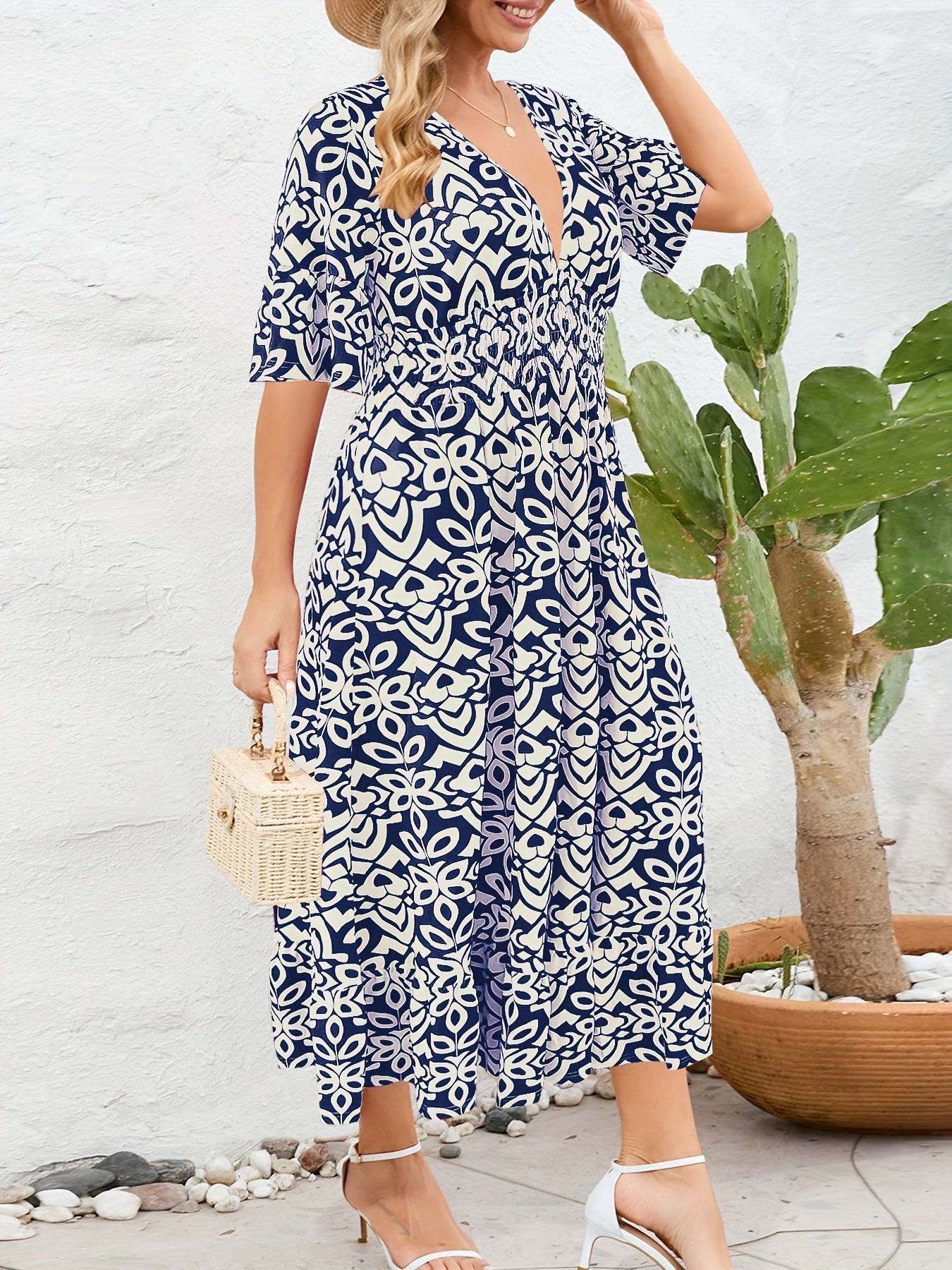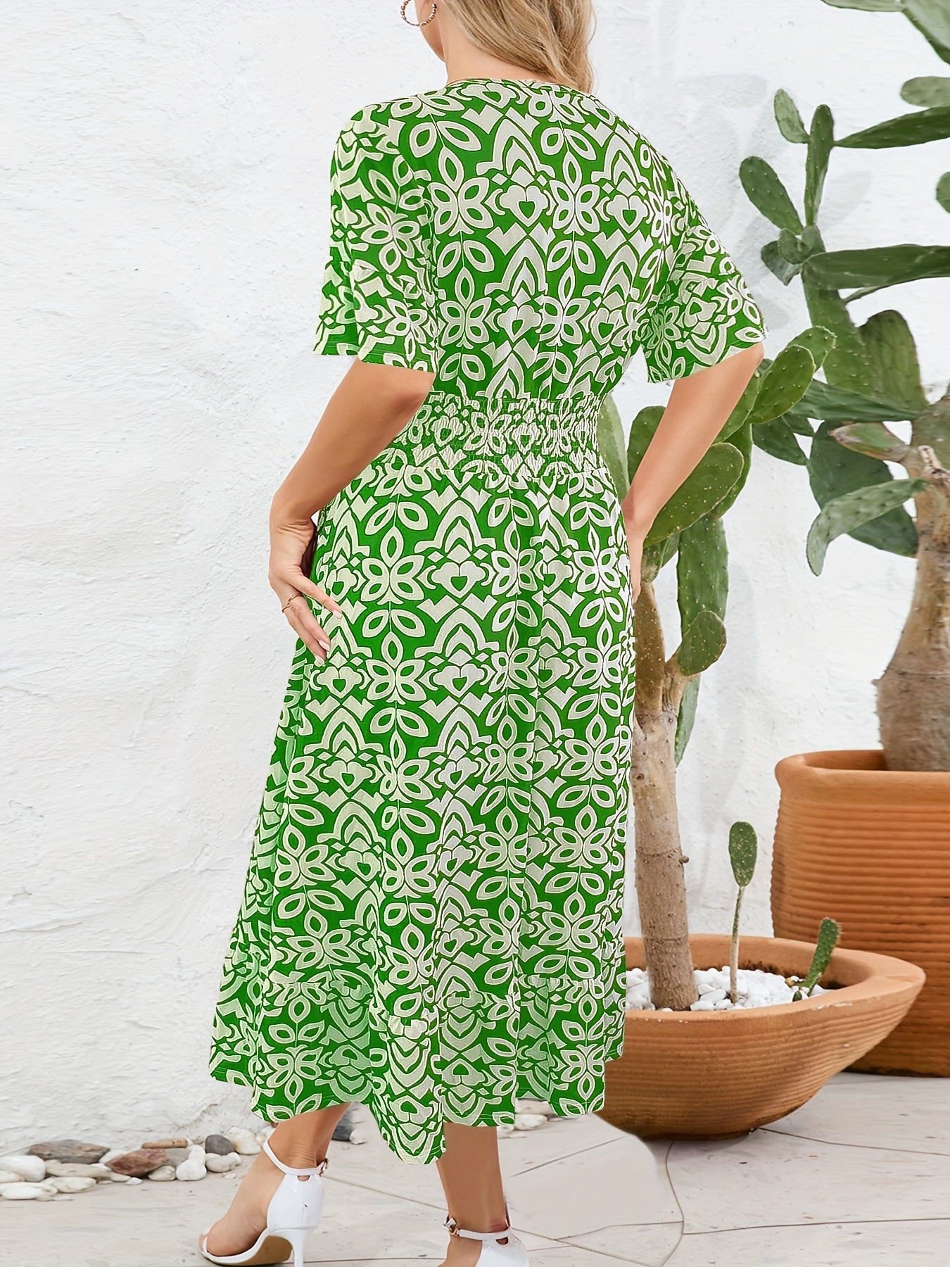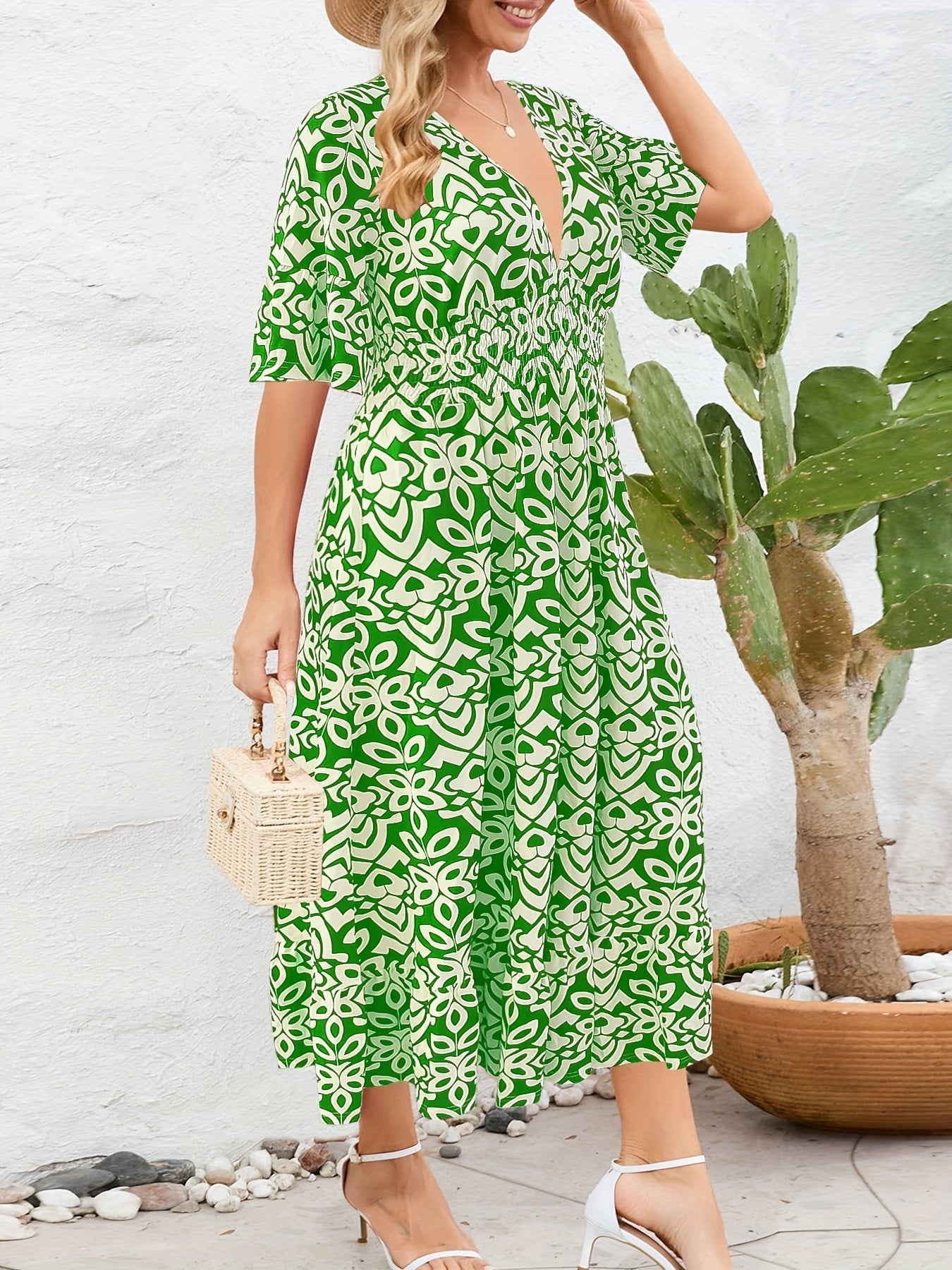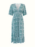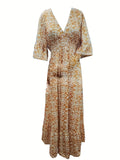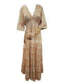 Women's Floral Print Half Sleeve V Neck Slight Stretch Maxi Dress
