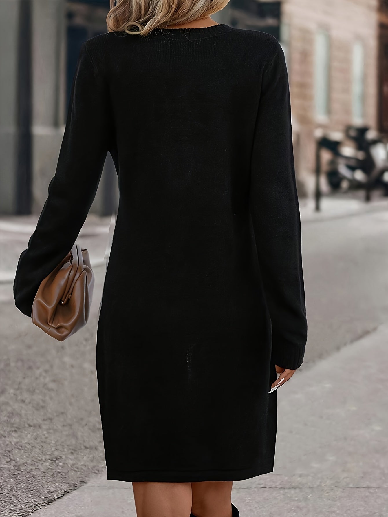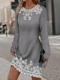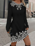 Floral Print Slim Dress, Casual Crew Neck Long Sleeve Dress