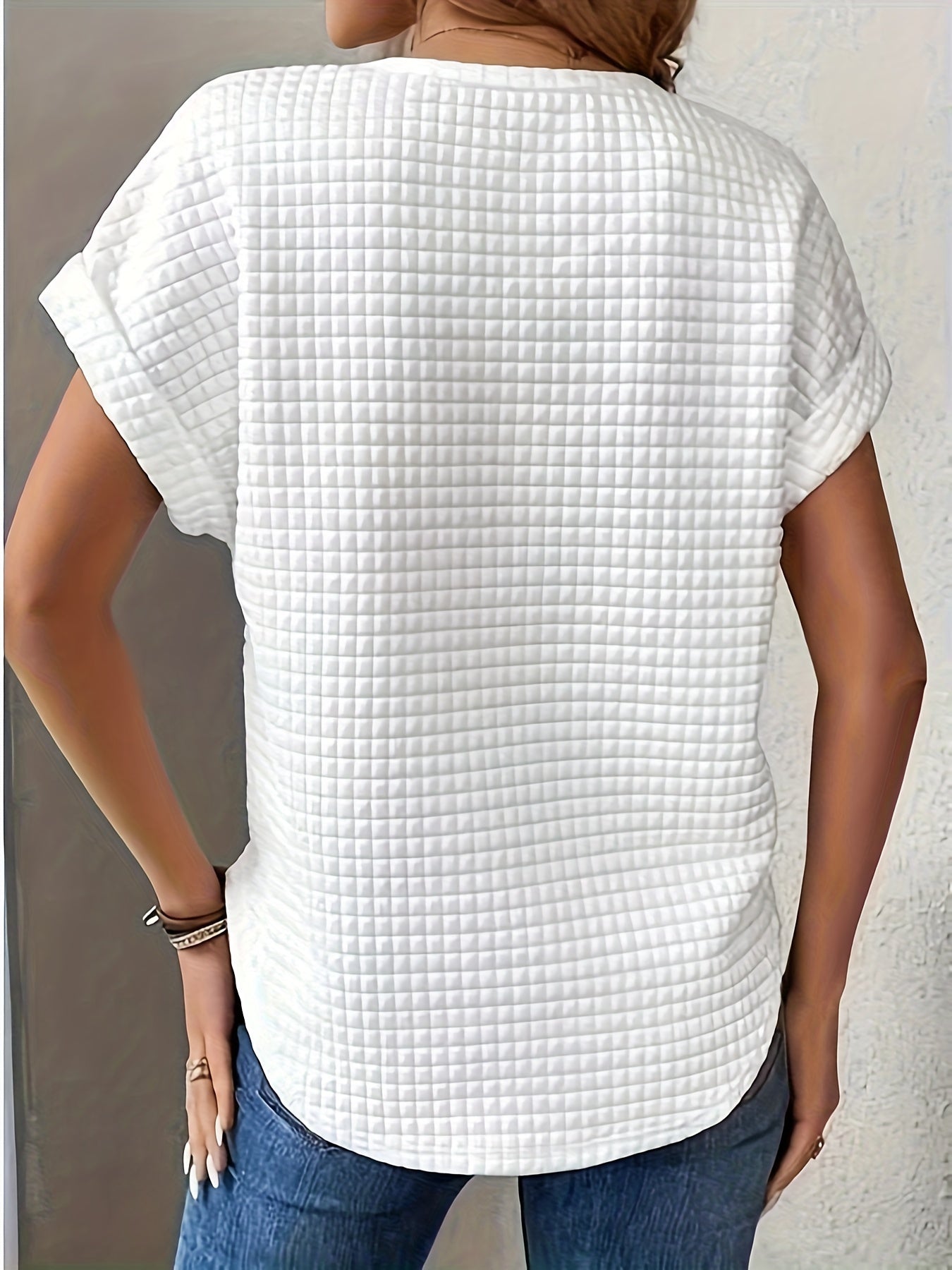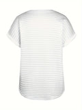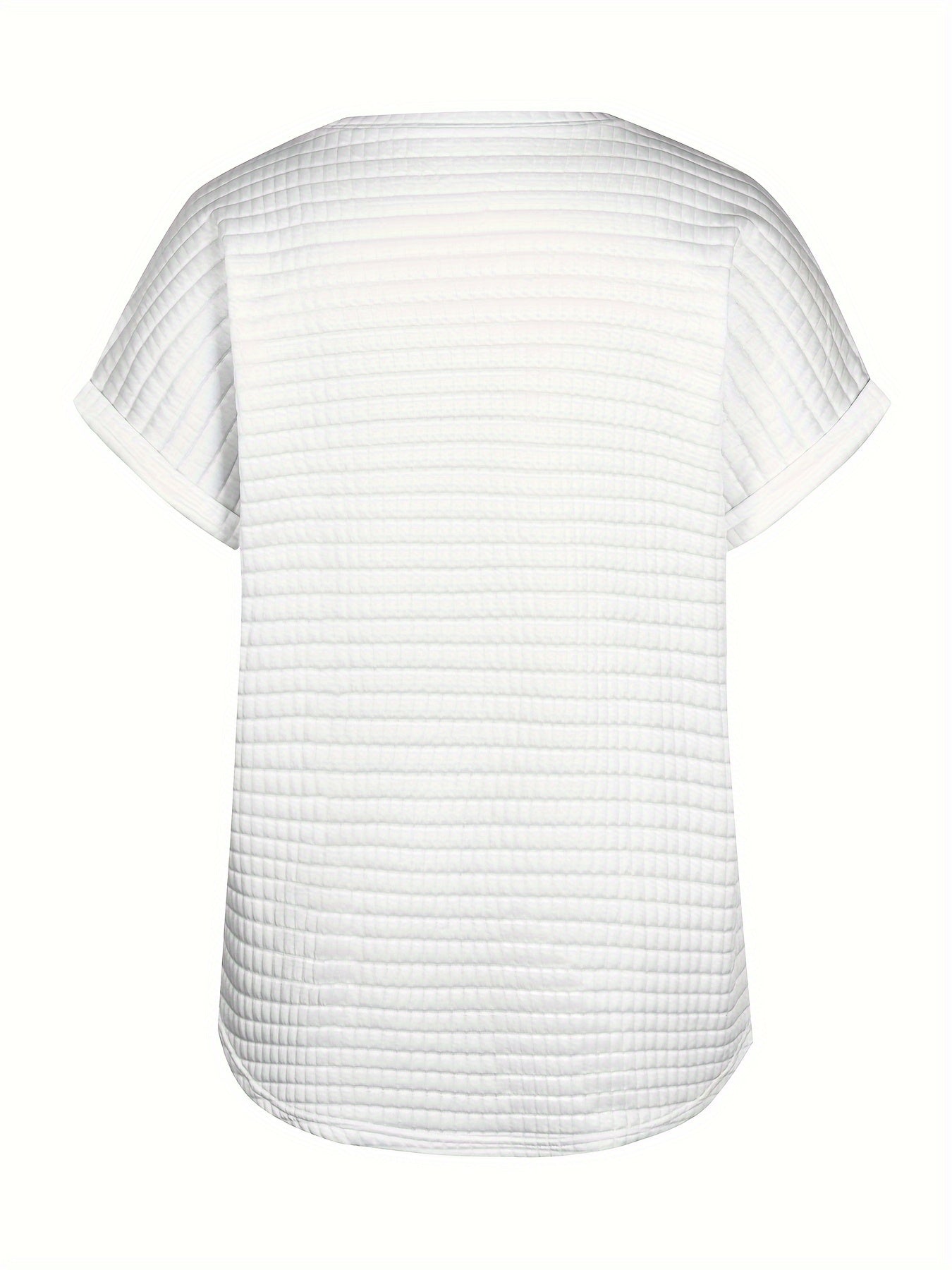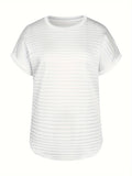 Sale Plaid Textured Solid T-Shirt, Casual Short Sleeve Top