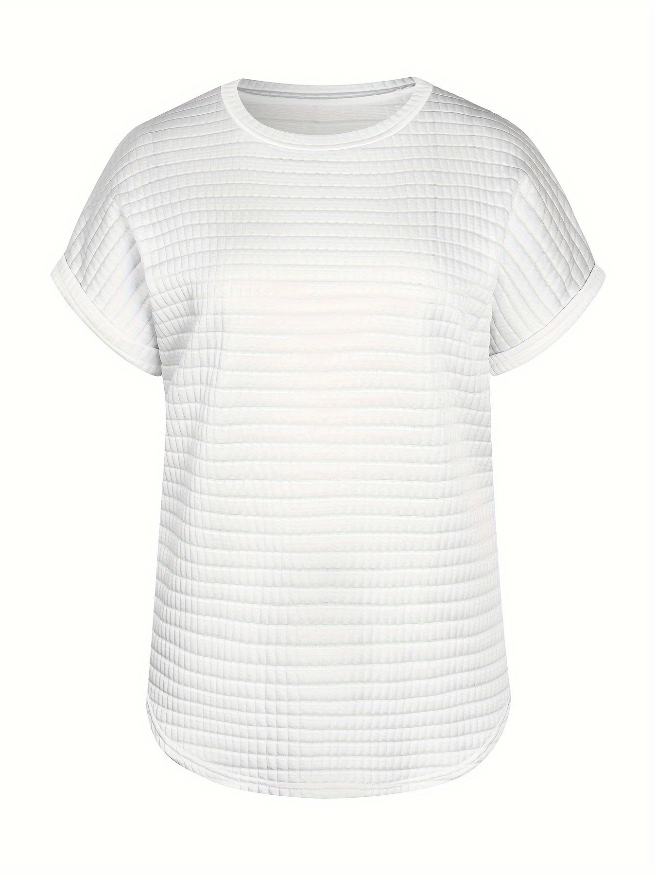Plaid Textured Solid T-Shirt, Casual Short Sleeve Top