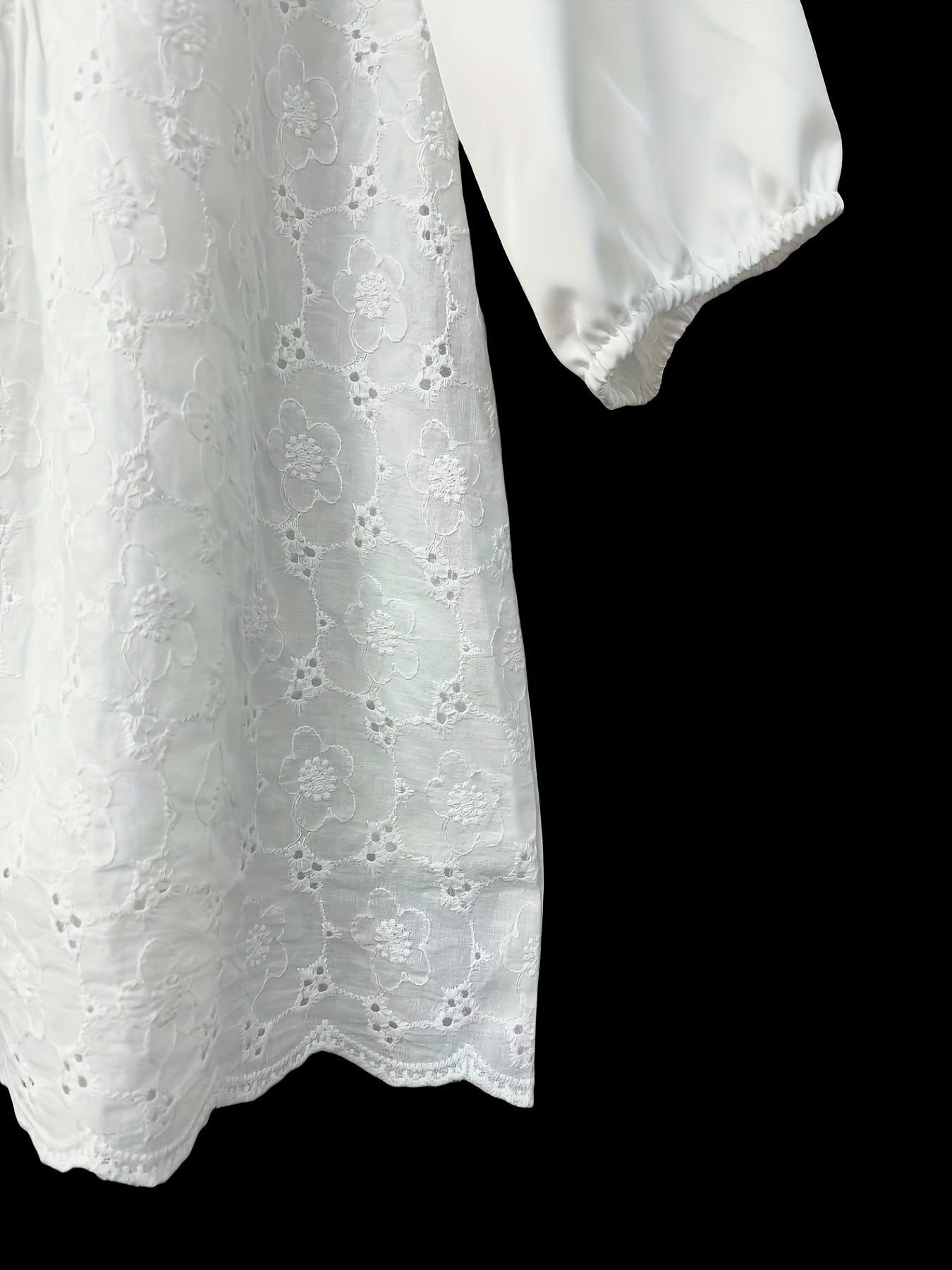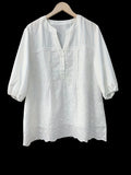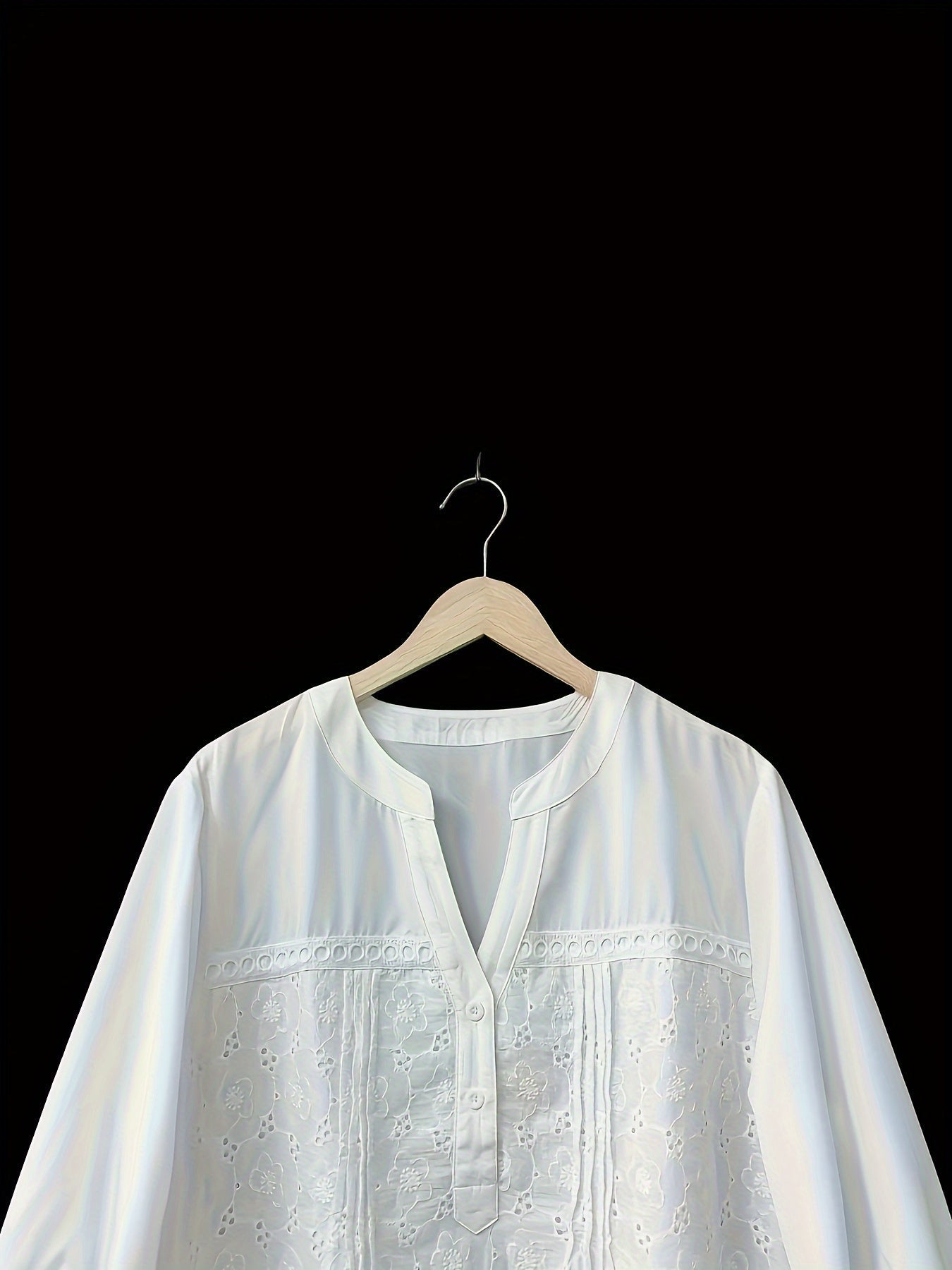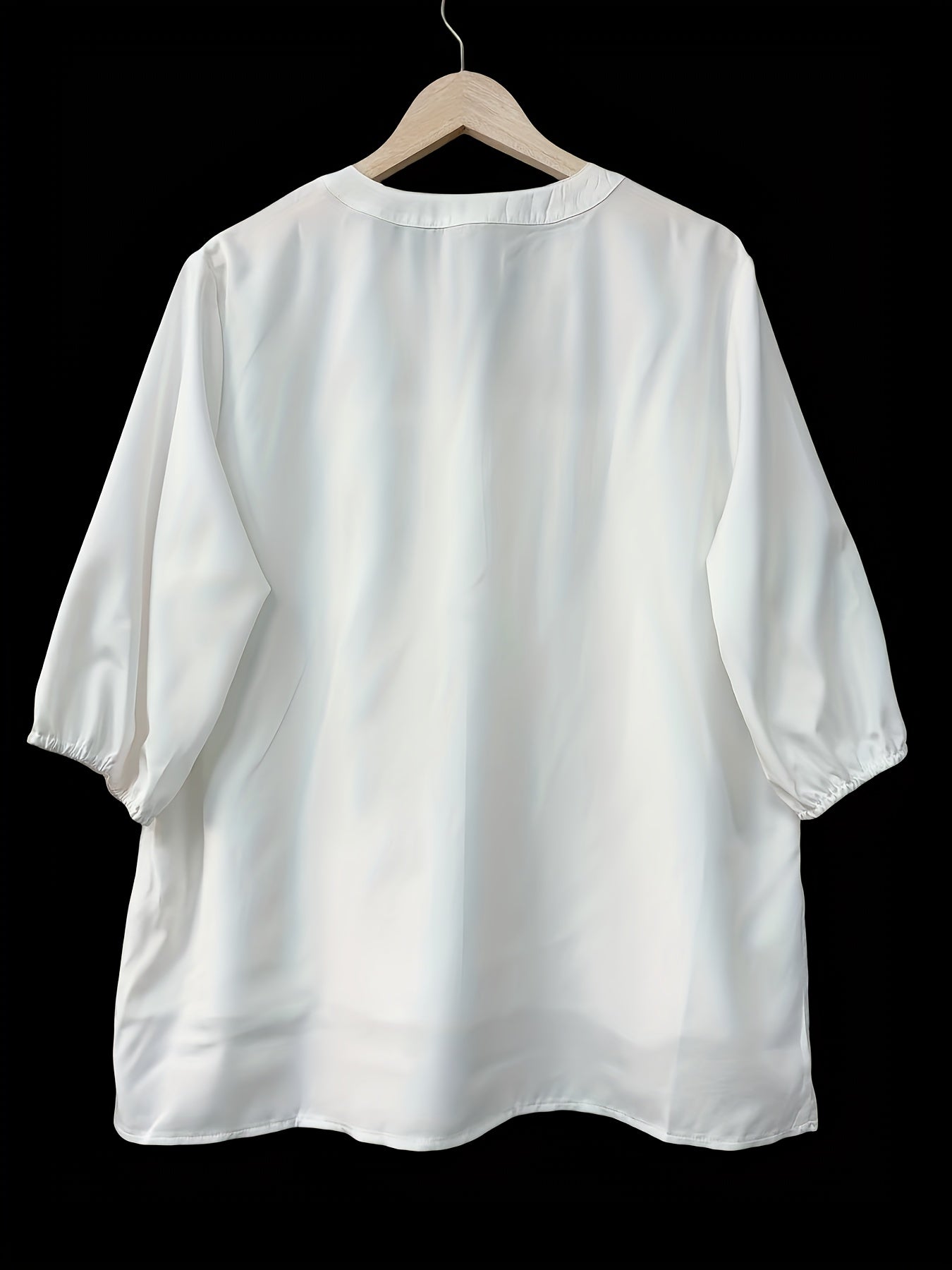Sale Solid Embroidery Eyelet Blouse, Vacation Notched Neck 3/4 Sleeve Blouse