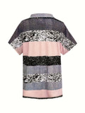 Sale Women's Feather Print Crew Neck Blouse - Casual Cut Out Short Sleeve Top