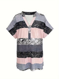 Striped Print T-Shirt, Casual V Neck Short Sleeve T-Shirt