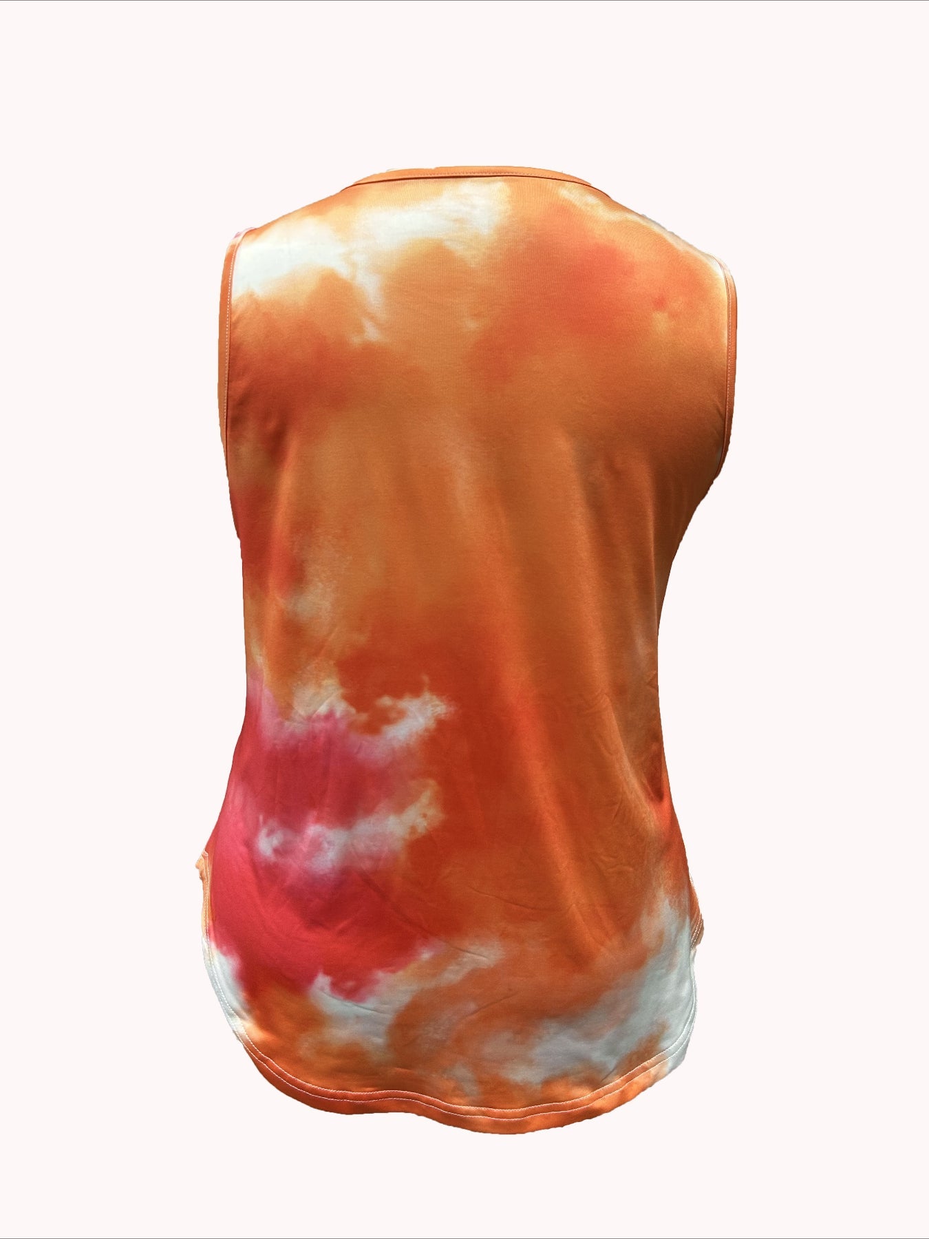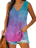 Sale Tie Dye Print Tank Top, Vacation V Neck Sleeveless Tank Top