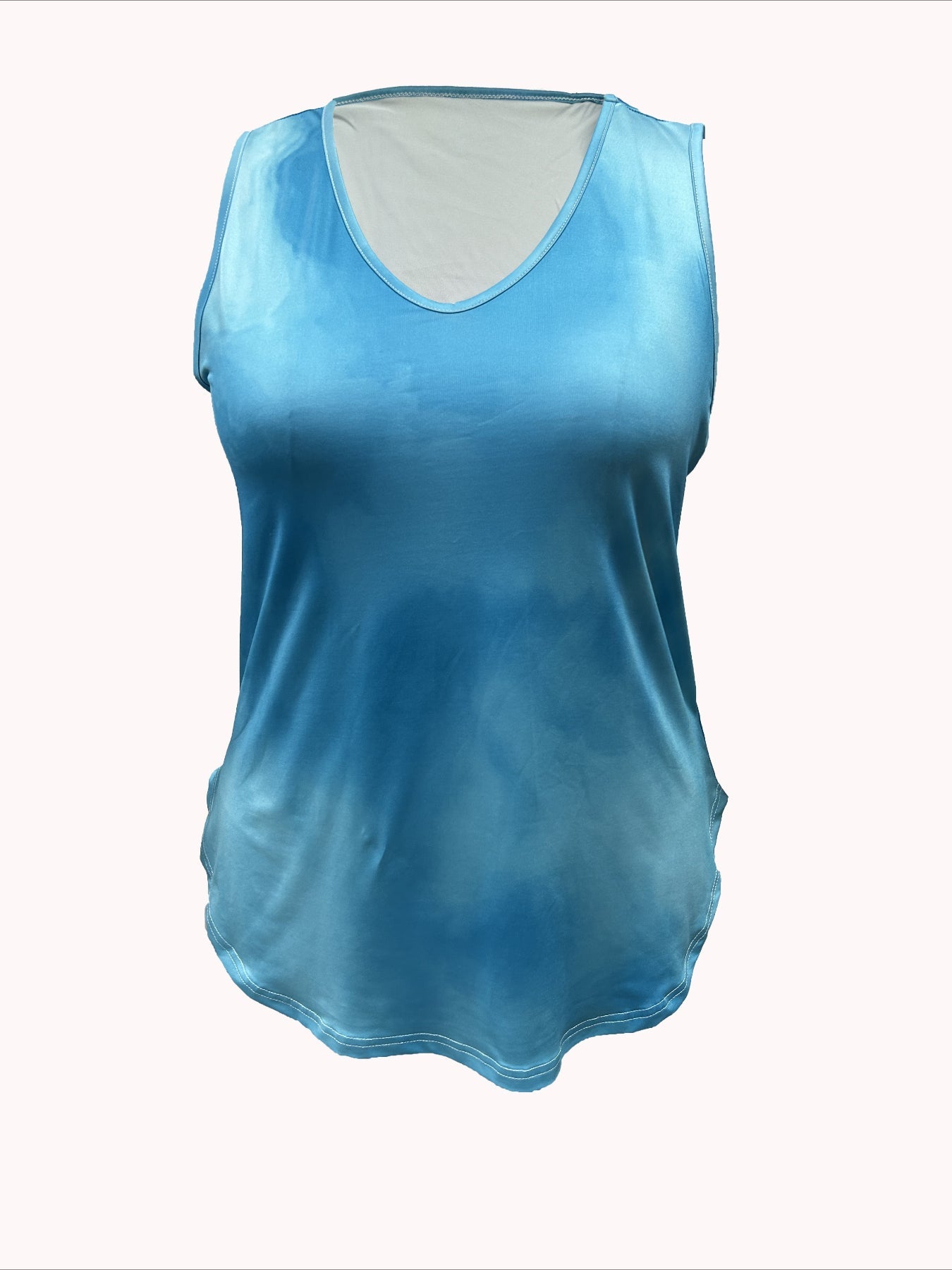 Tie Dye Print Tank Top, Vacation V Neck Sleeveless Tank Top