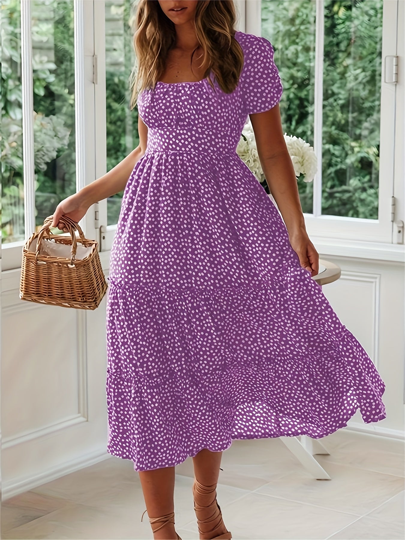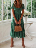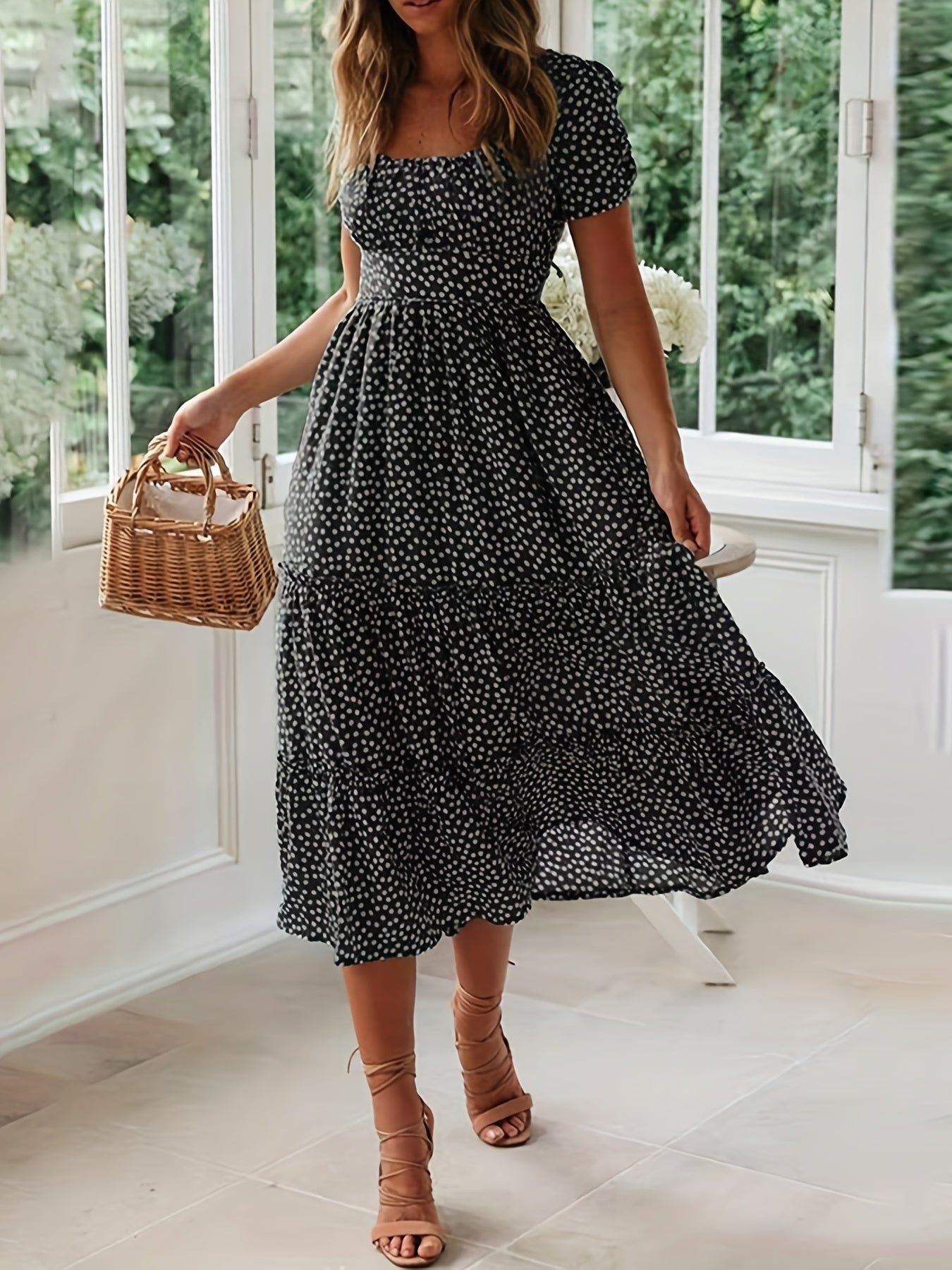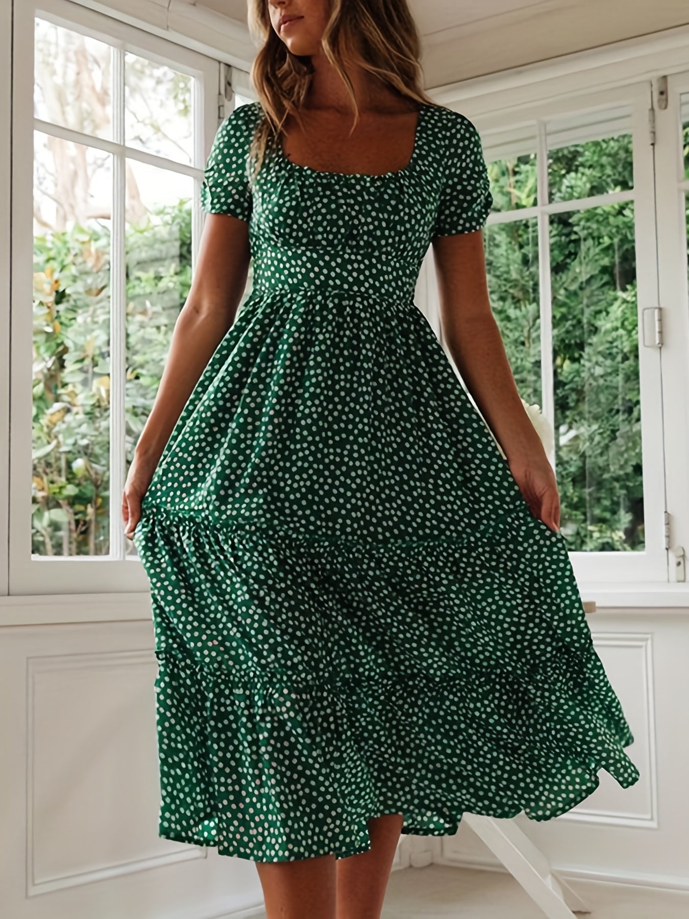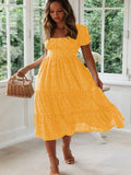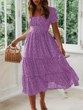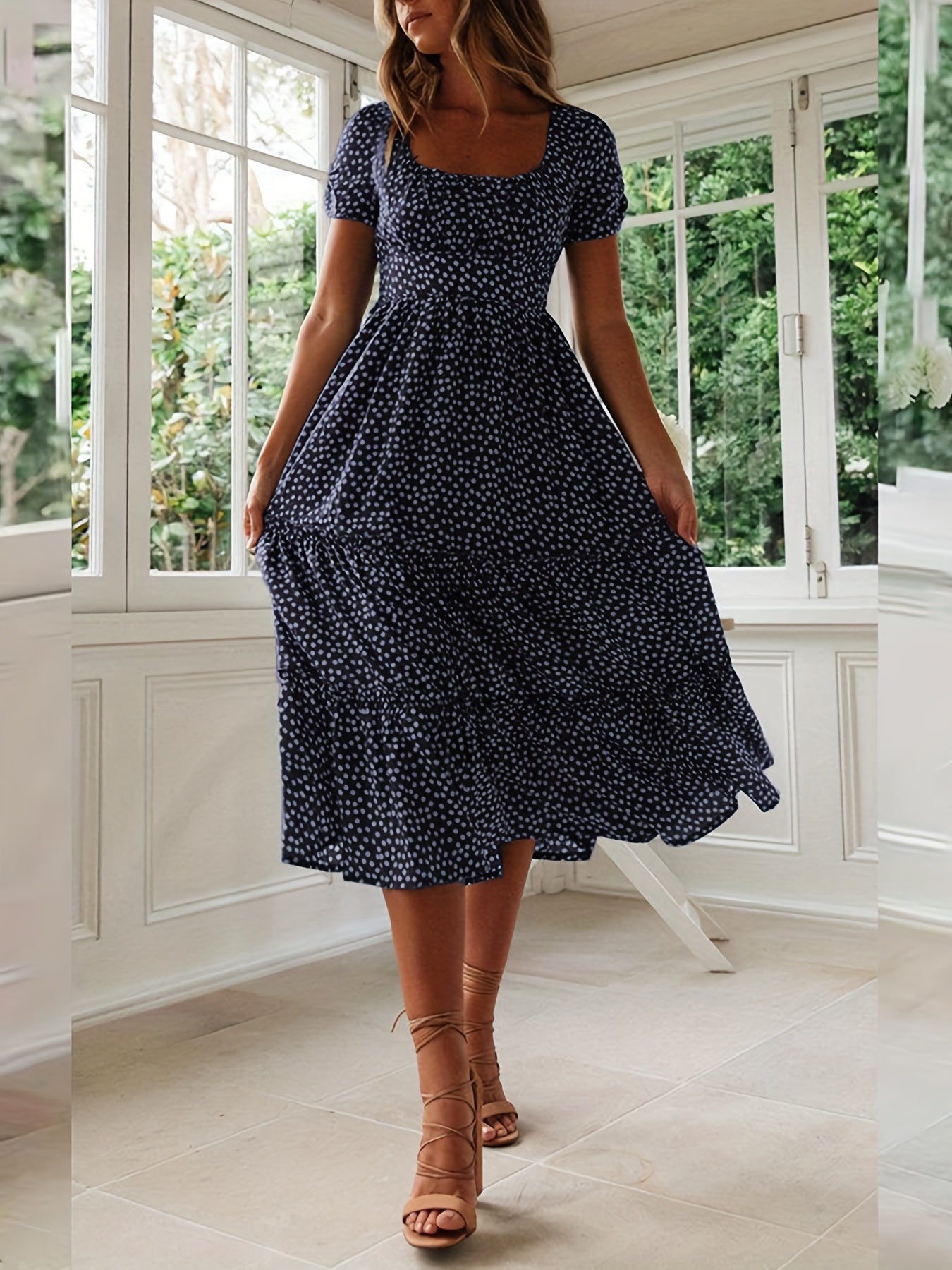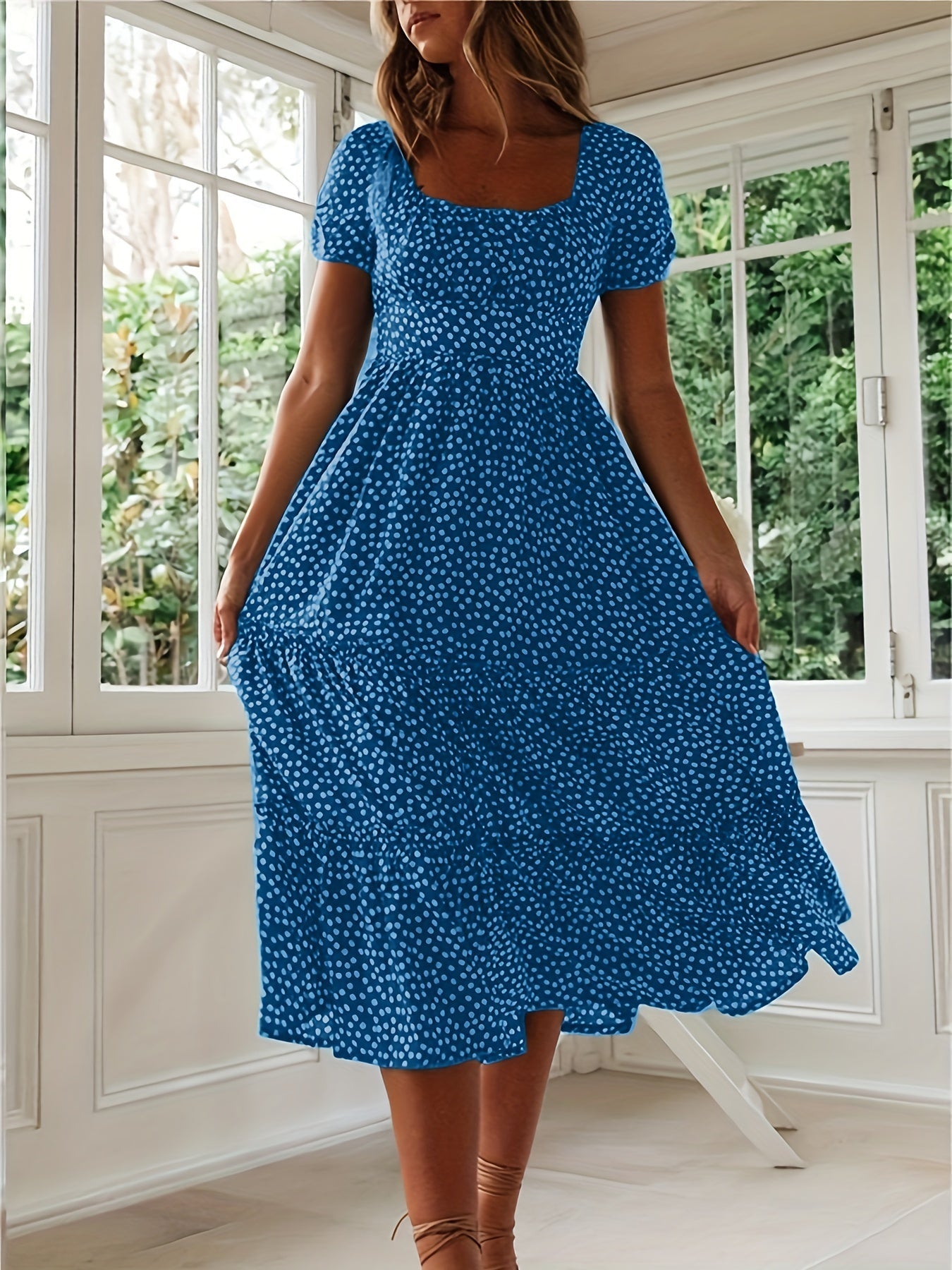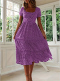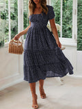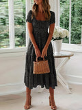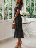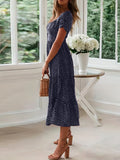 Sale Polka Dot Ruffle Hem Dress, Casual Square Neck Short Sleeve Dress