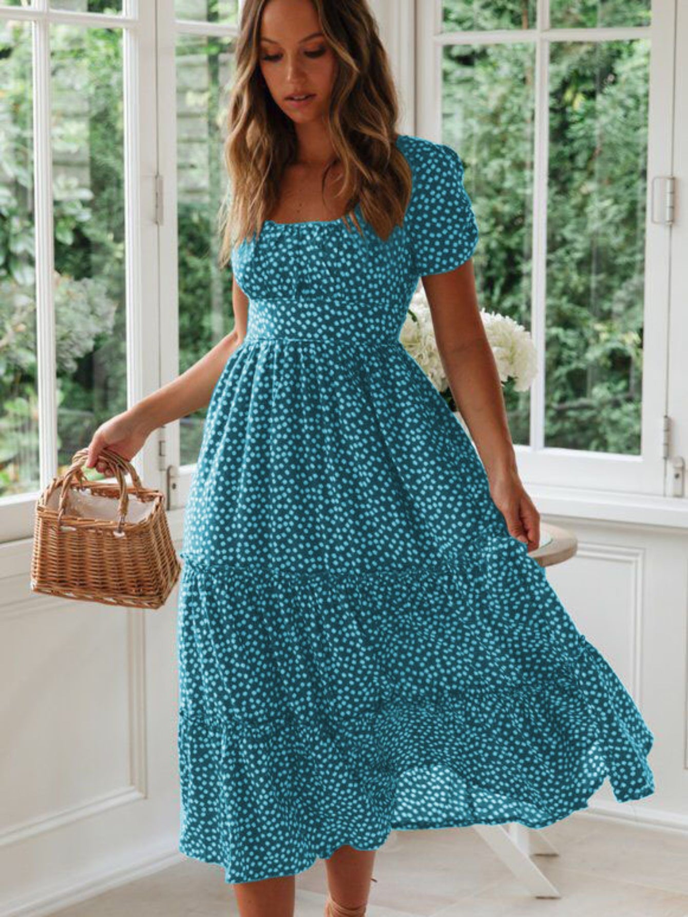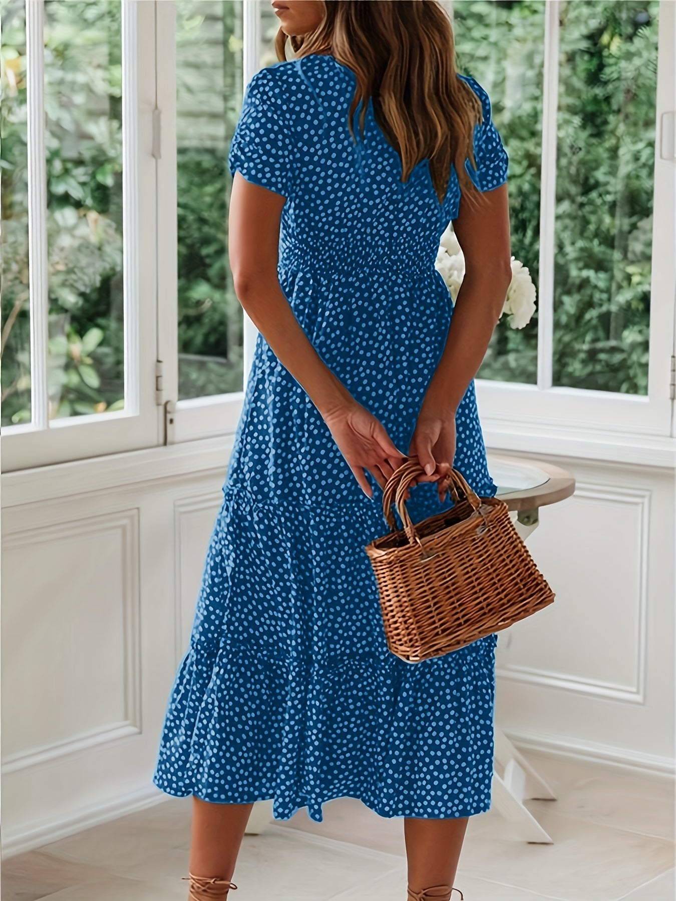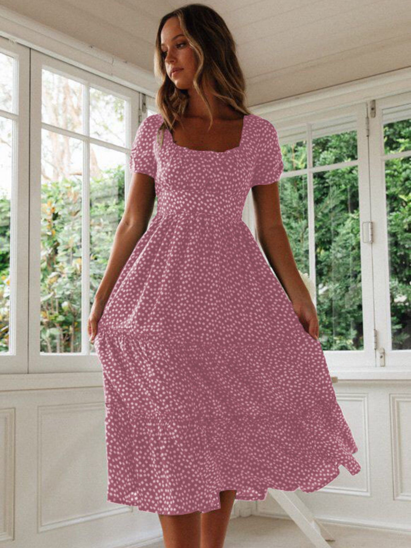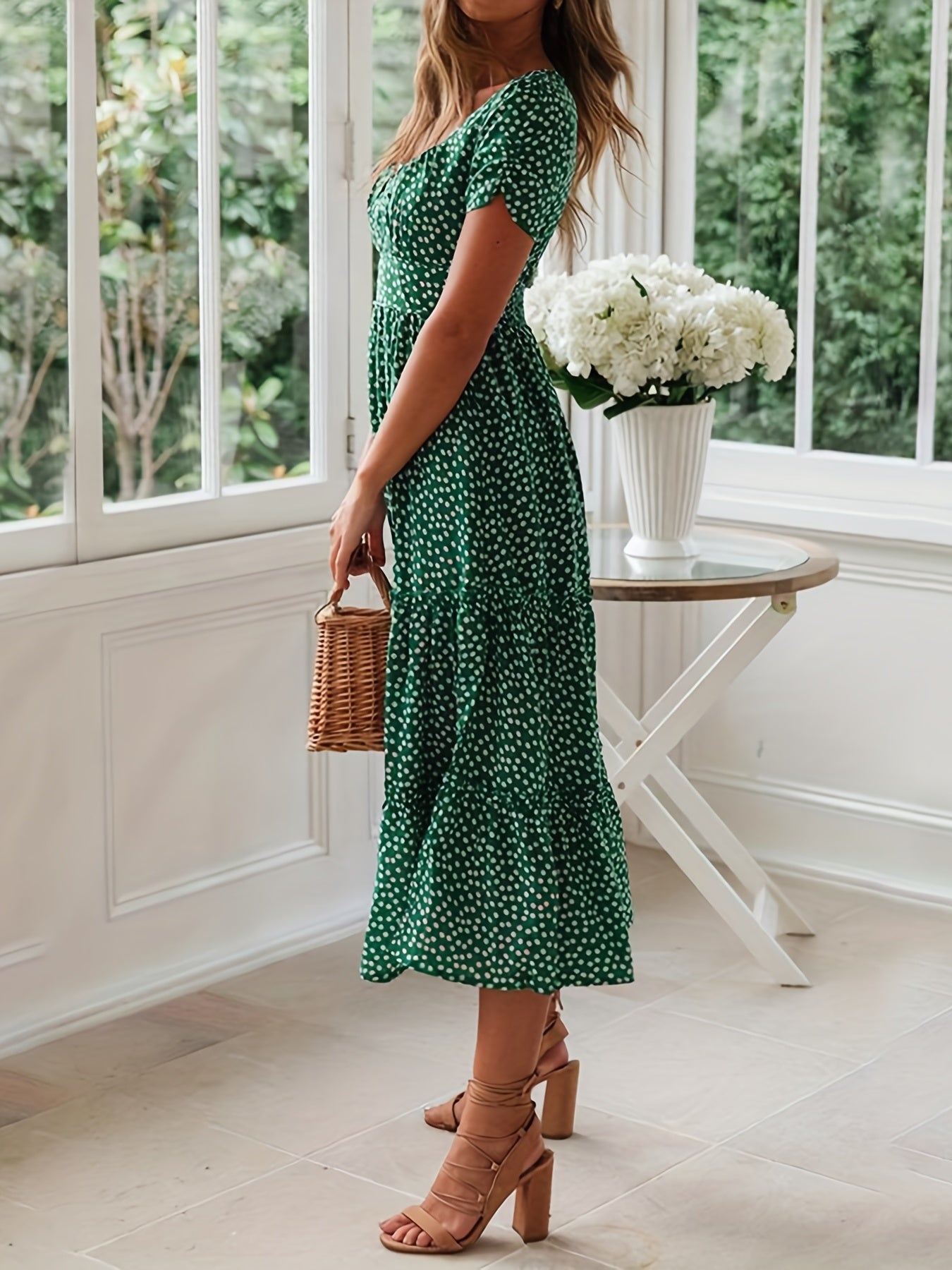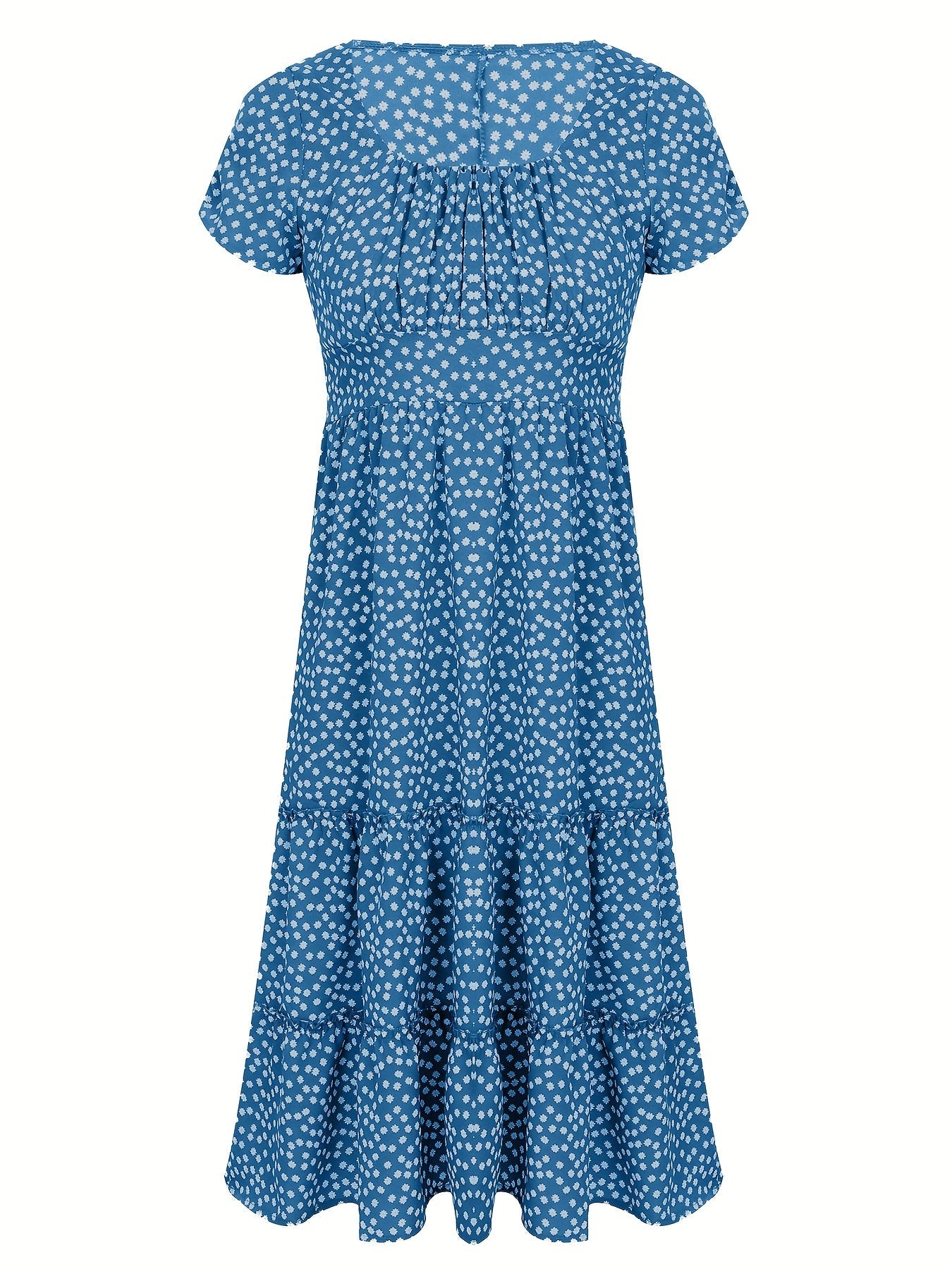 Sale Polka Dot Ruffle Hem Dress, Casual Square Neck Short Sleeve Dress