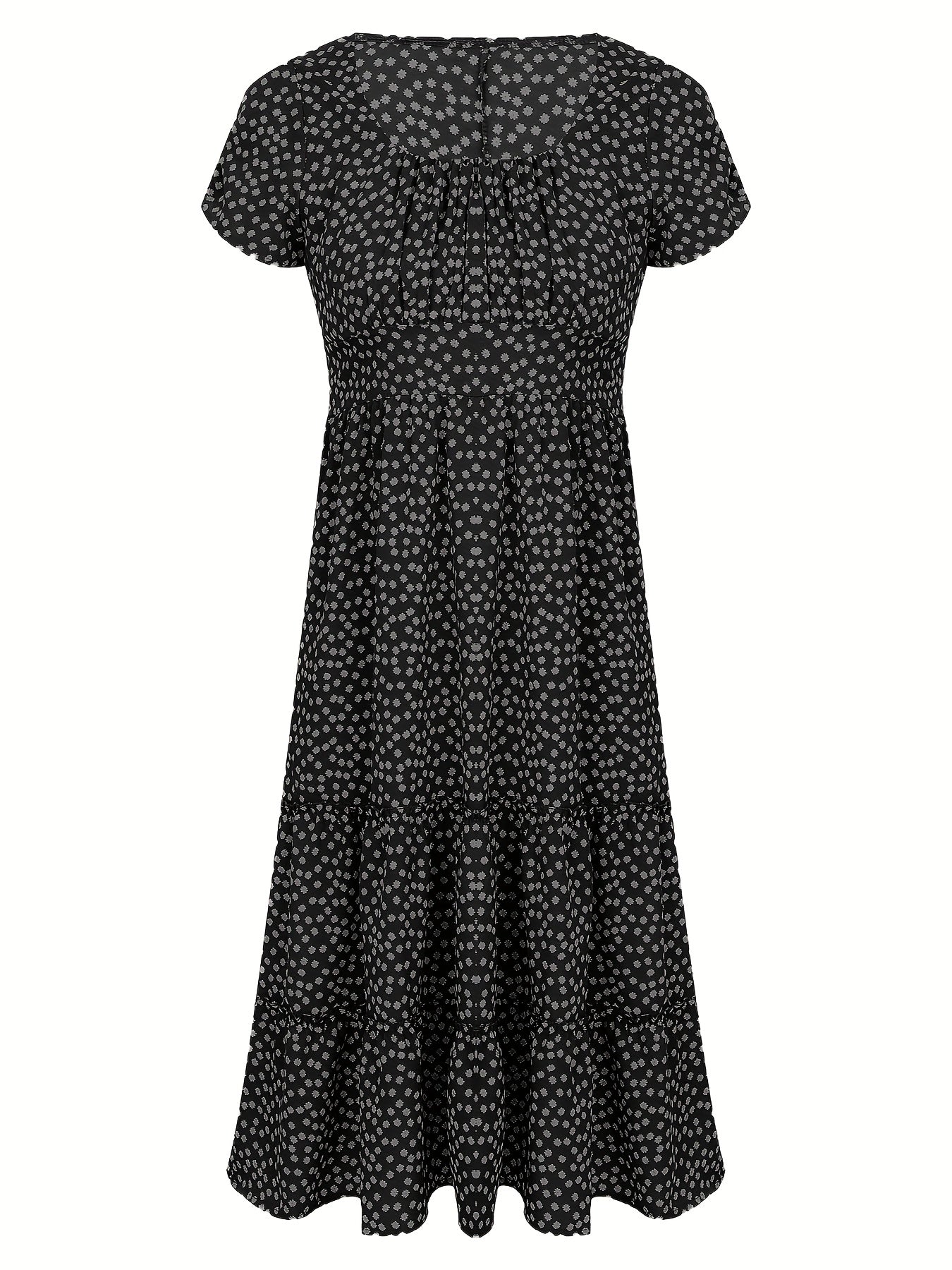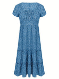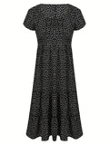 Polka Dot Ruffle Hem Dress, Casual Square Neck Short Sleeve Dress