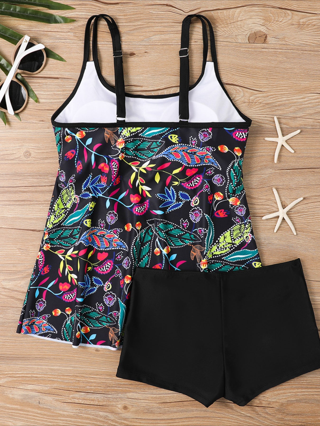 Printed Belly Shading Slim Large Size Split Tankini