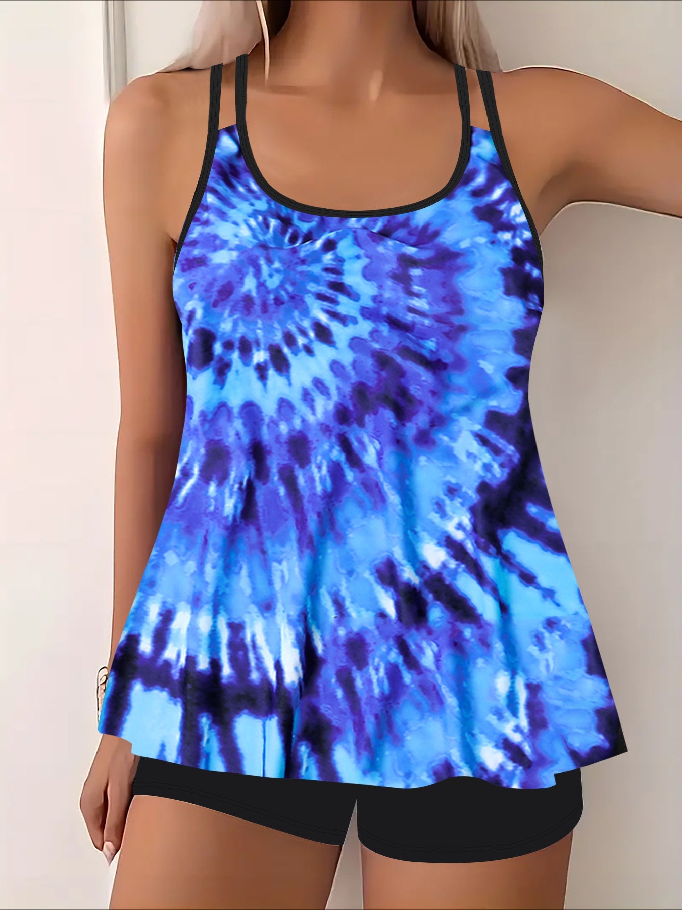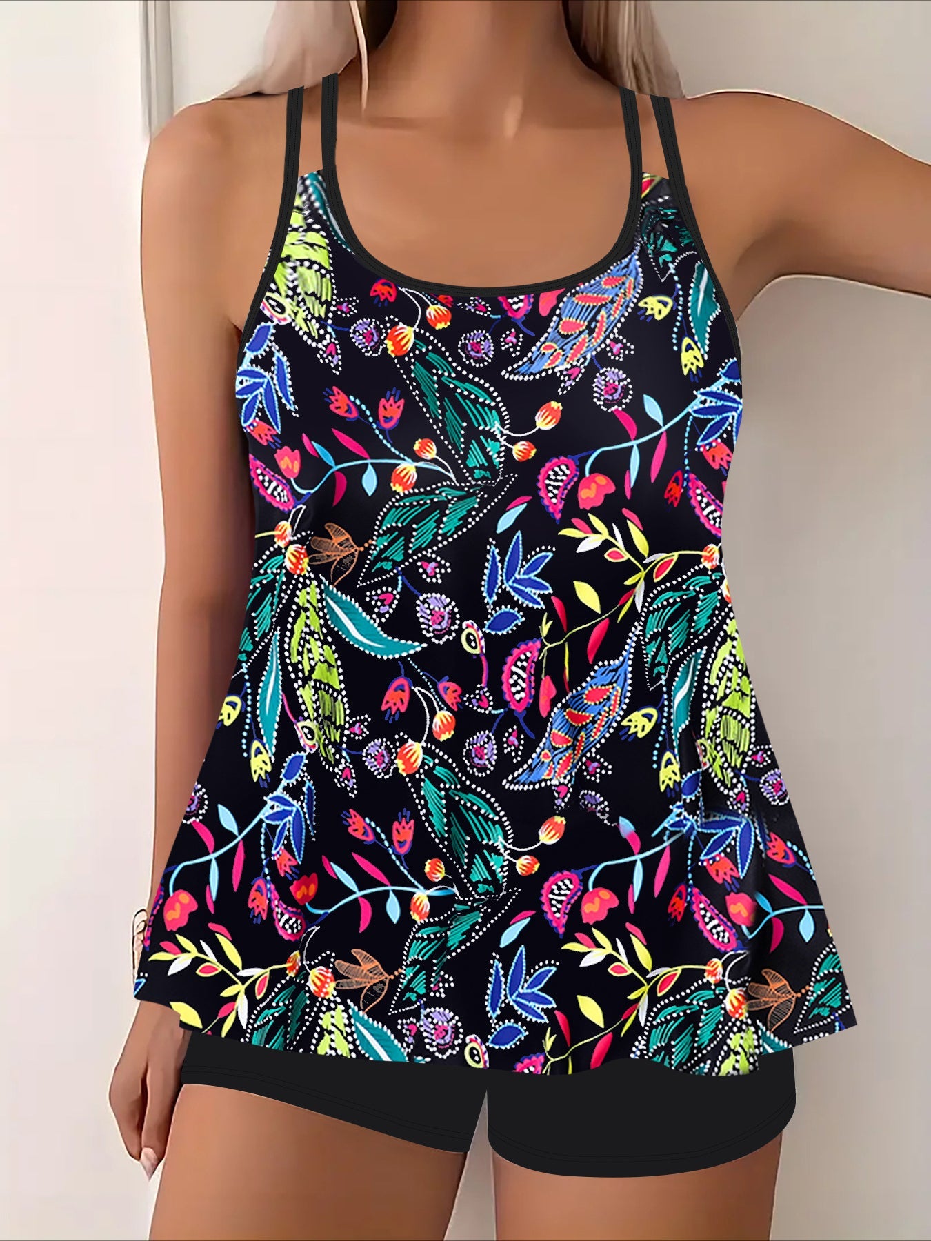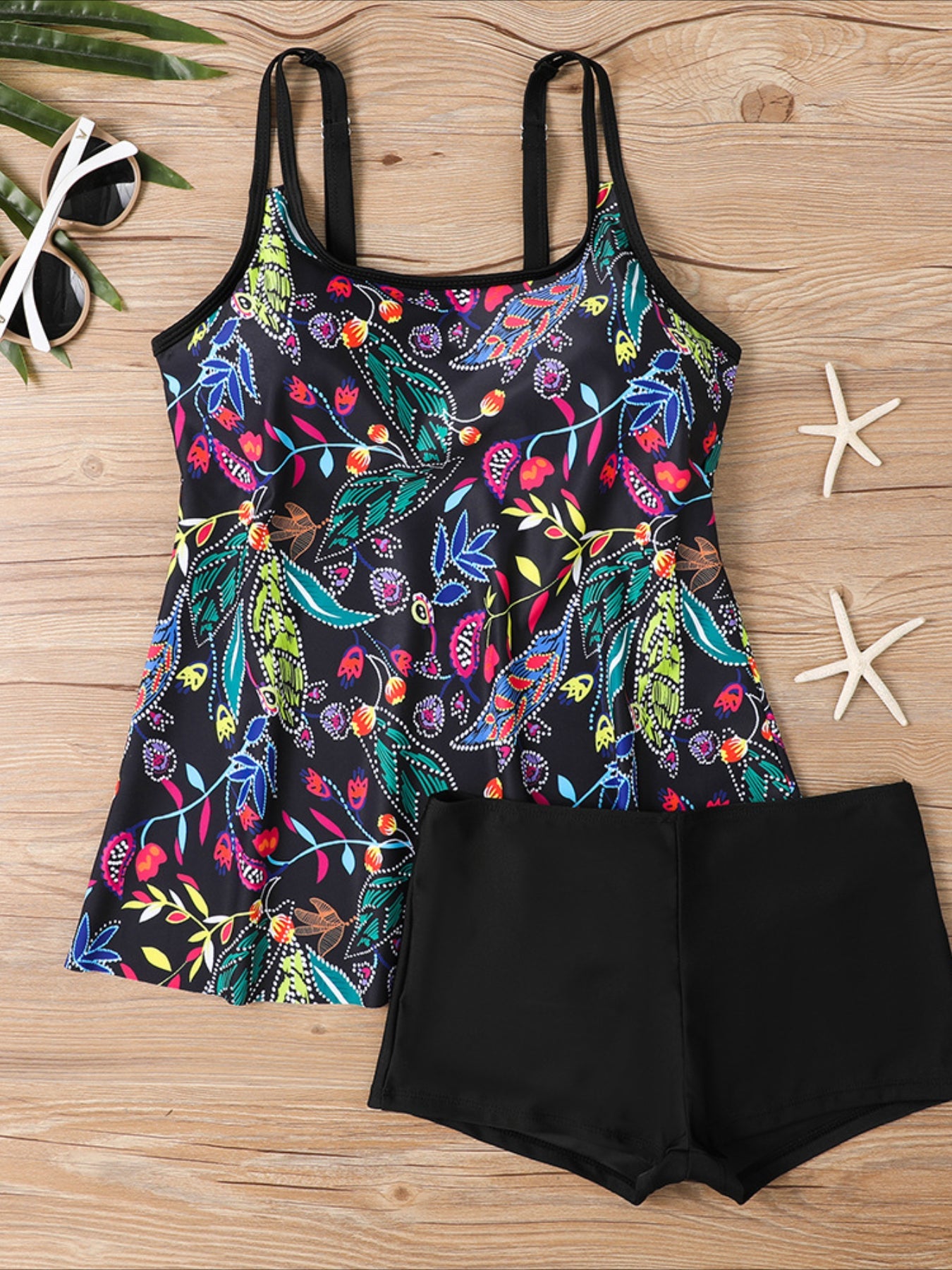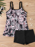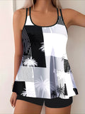 Sale Tropical Leaf Print V Neck High Waist Bikini Sets, Drawstring Spaghetti Straps Boxer Short Bottoms Two Pieces Swimsuit