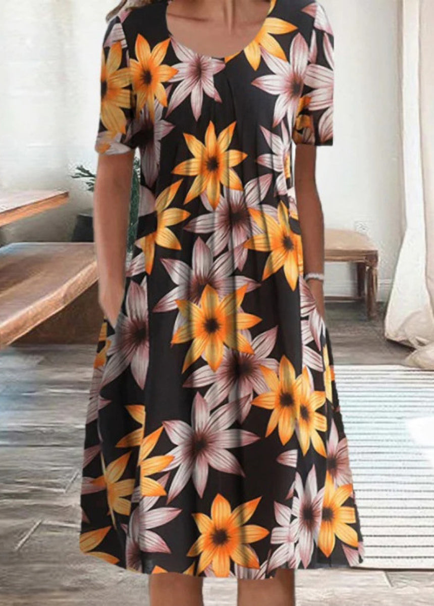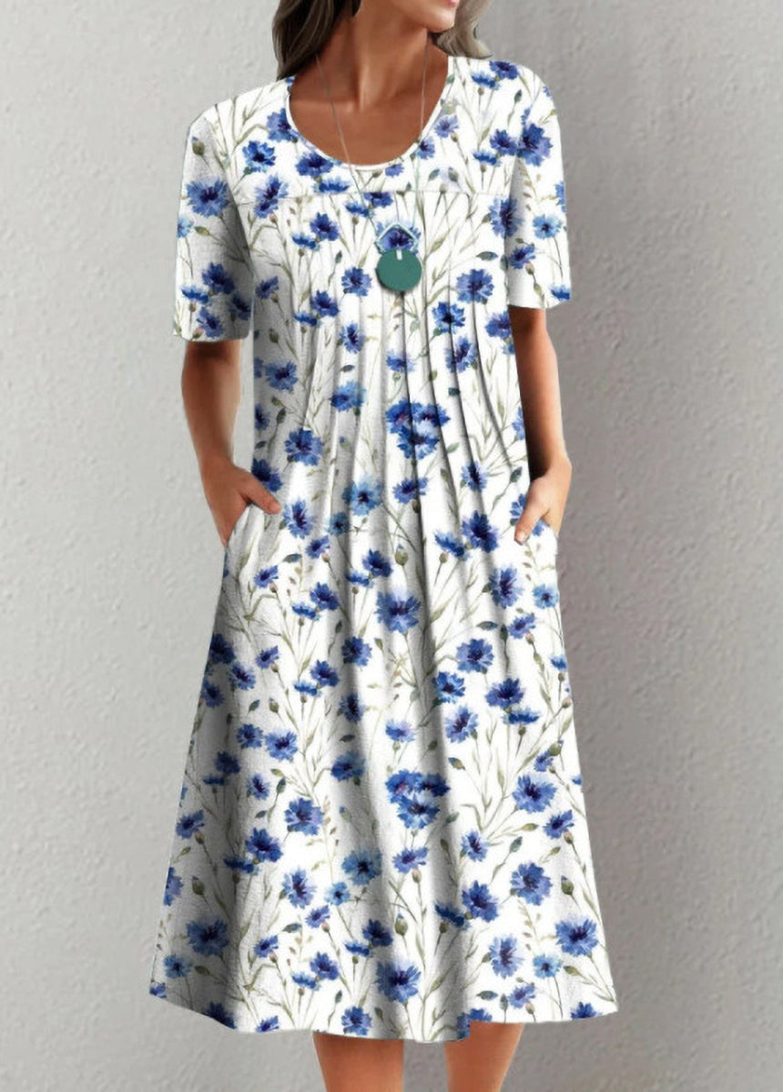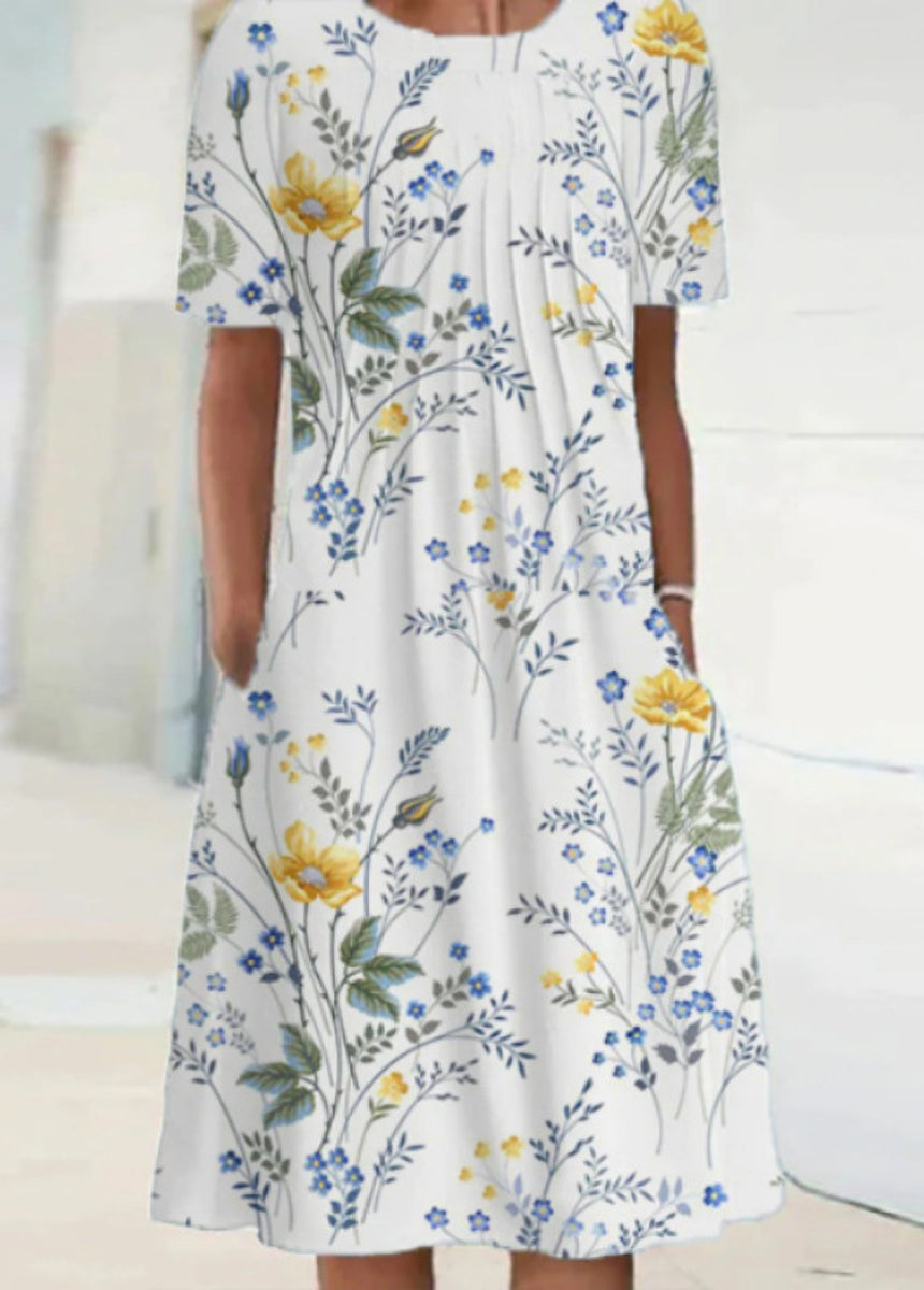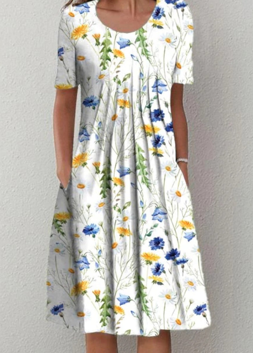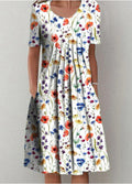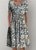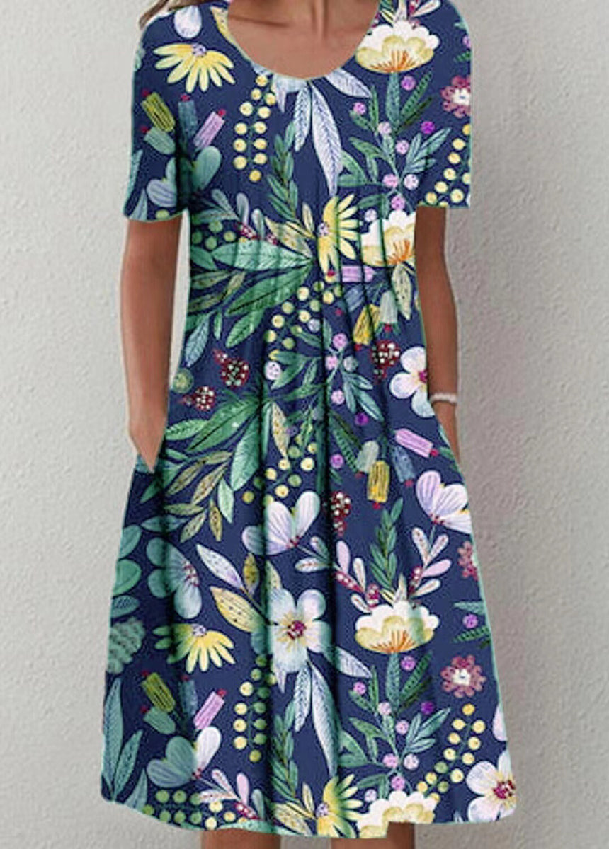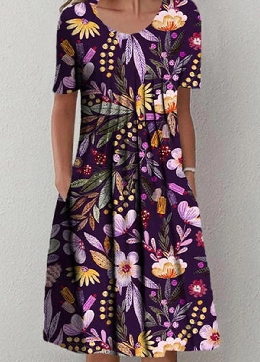 Printed Round Neck Short Sleeve Dress