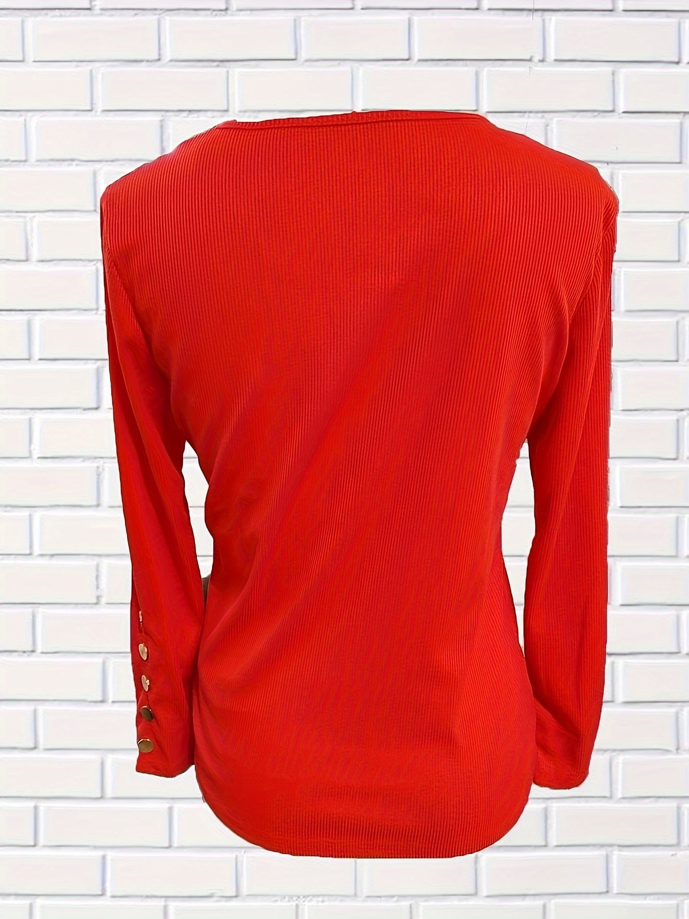 Ribbed Button Front T-Shirt, Casual Long Sleeve Top
