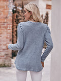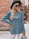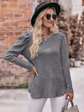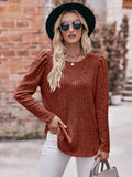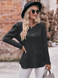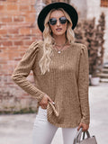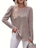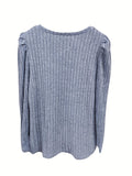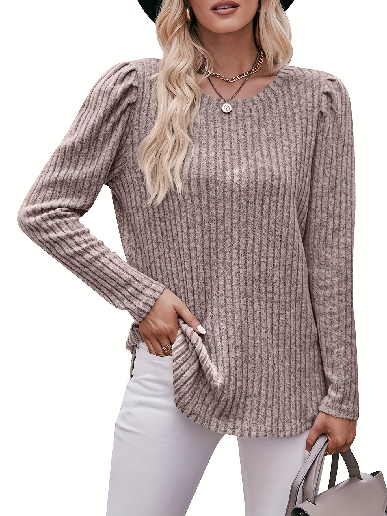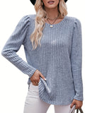Ribbed Crew Neck T-Shirt, Casual Long Sleeve Top