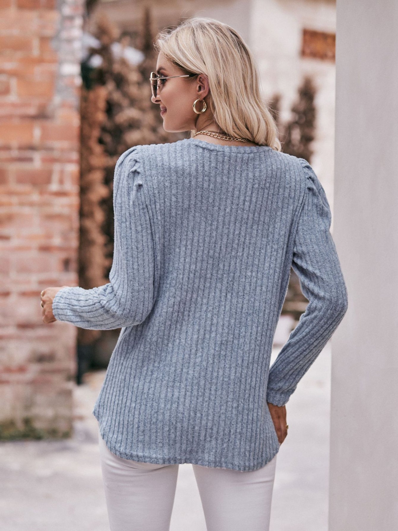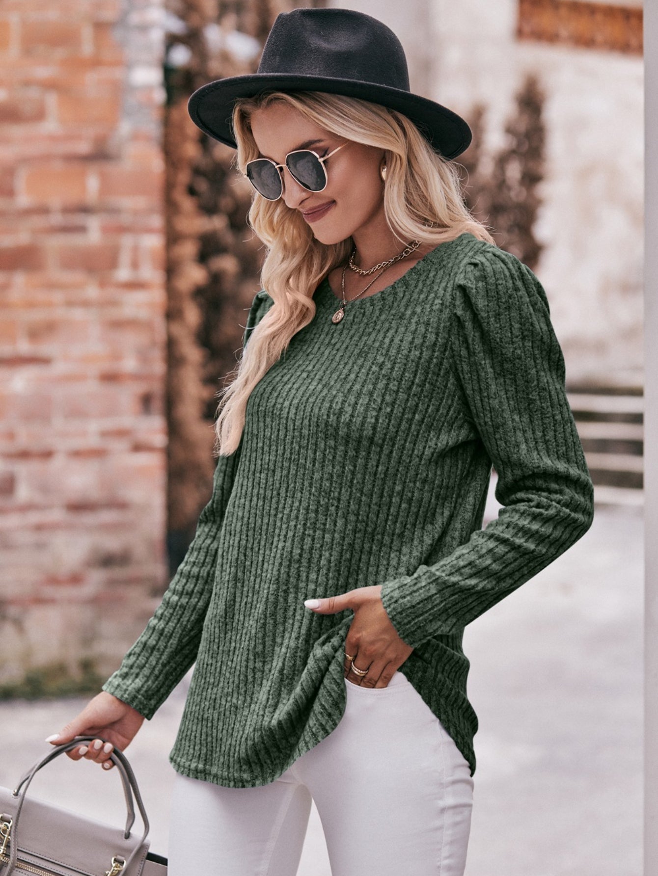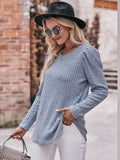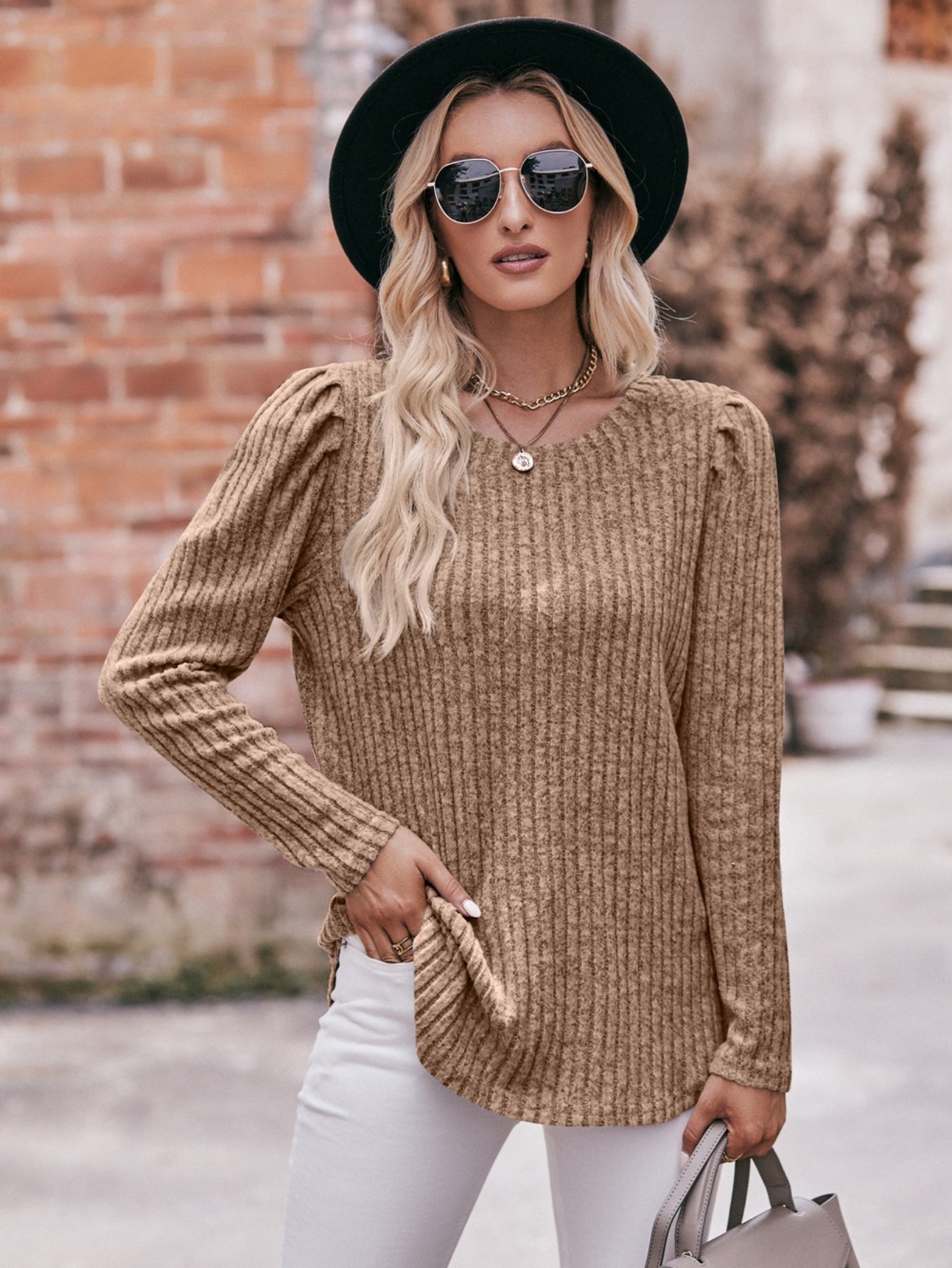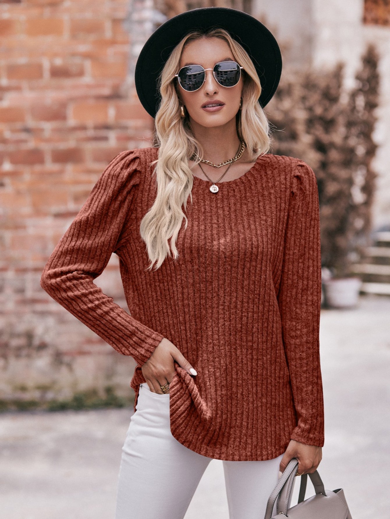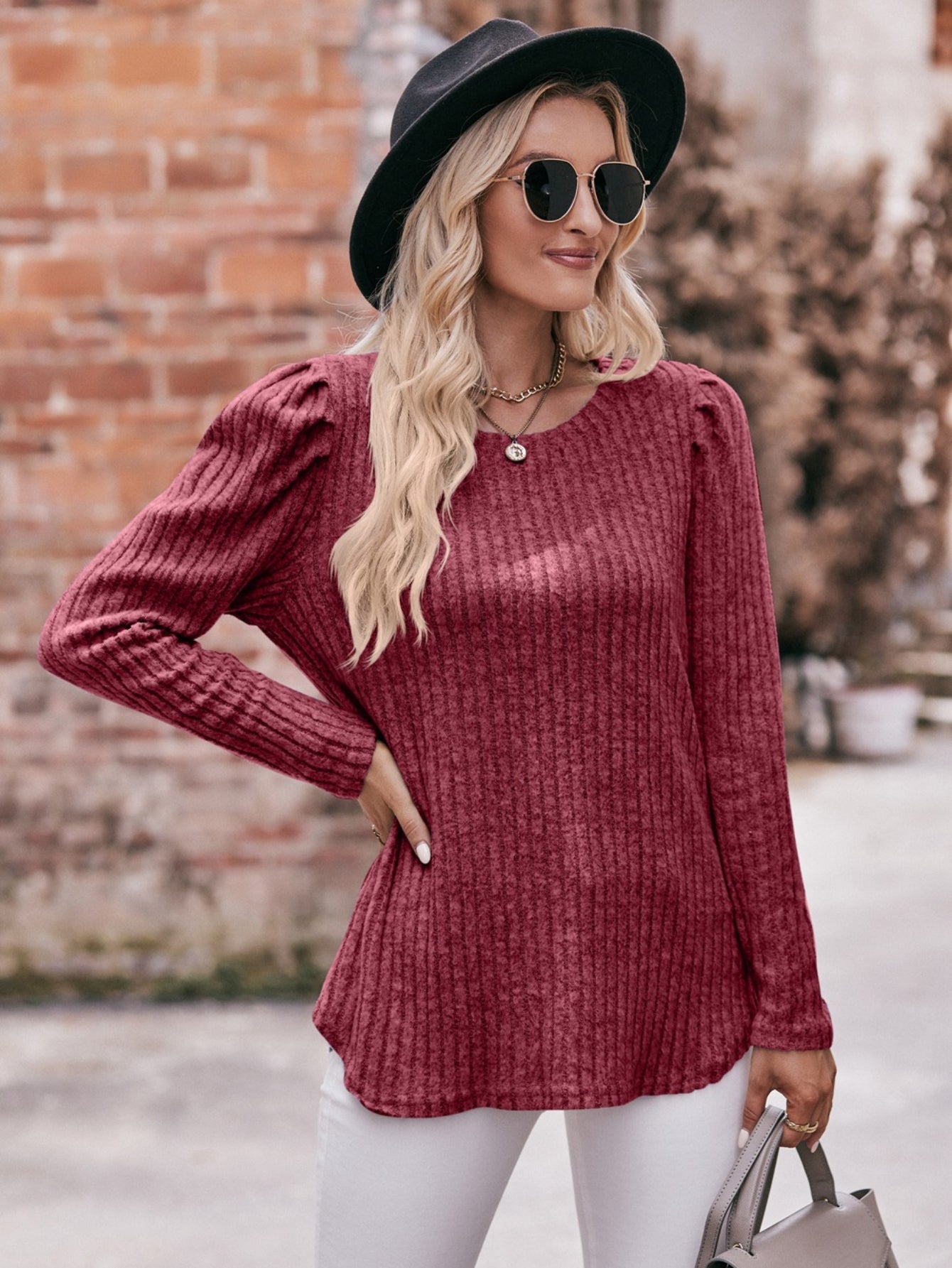 Sale Ribbed Crew Neck T-Shirt, Casual Long Sleeve Top