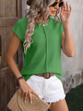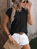 Sale Solid Pleated Trim Blouse, Casual Crew Neck Short Sleeve Blouse