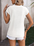 Sale Women's Feather Print Crew Neck Blouse - Casual Cut Out Short Sleeve Top