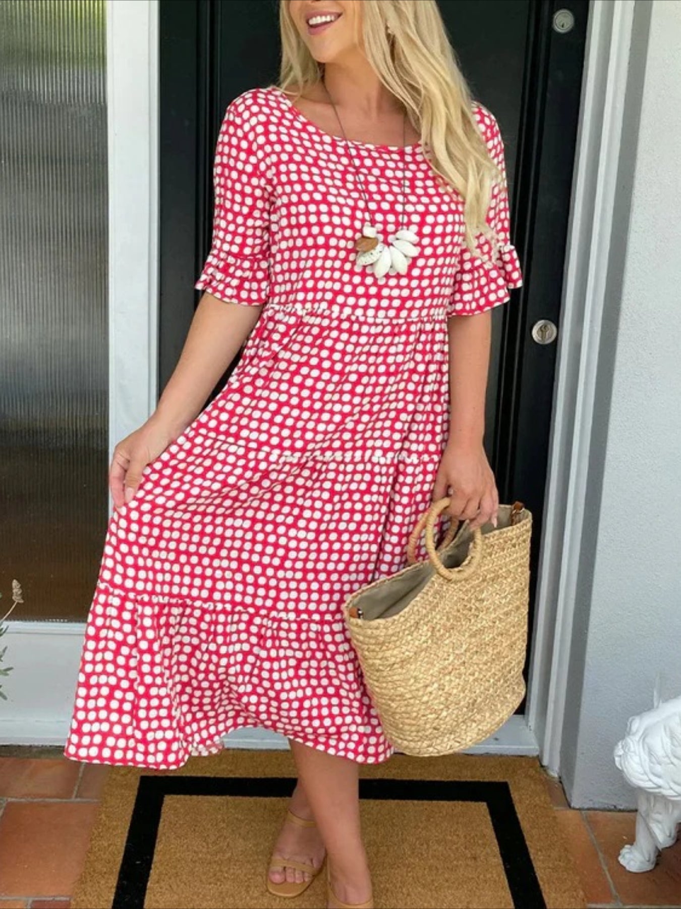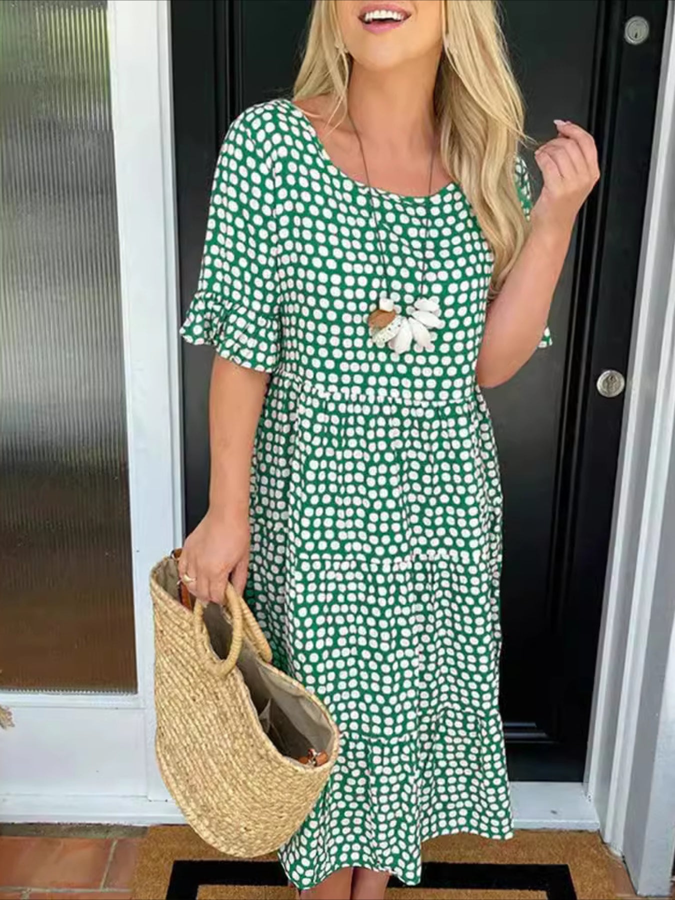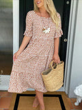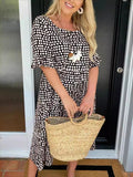 Round Neck Print Short Sleeve Maxi Dress