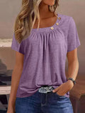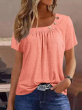 Ruched Solid Blouse, Casual Asymmetrical Short Sleeve Blouse