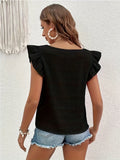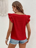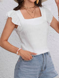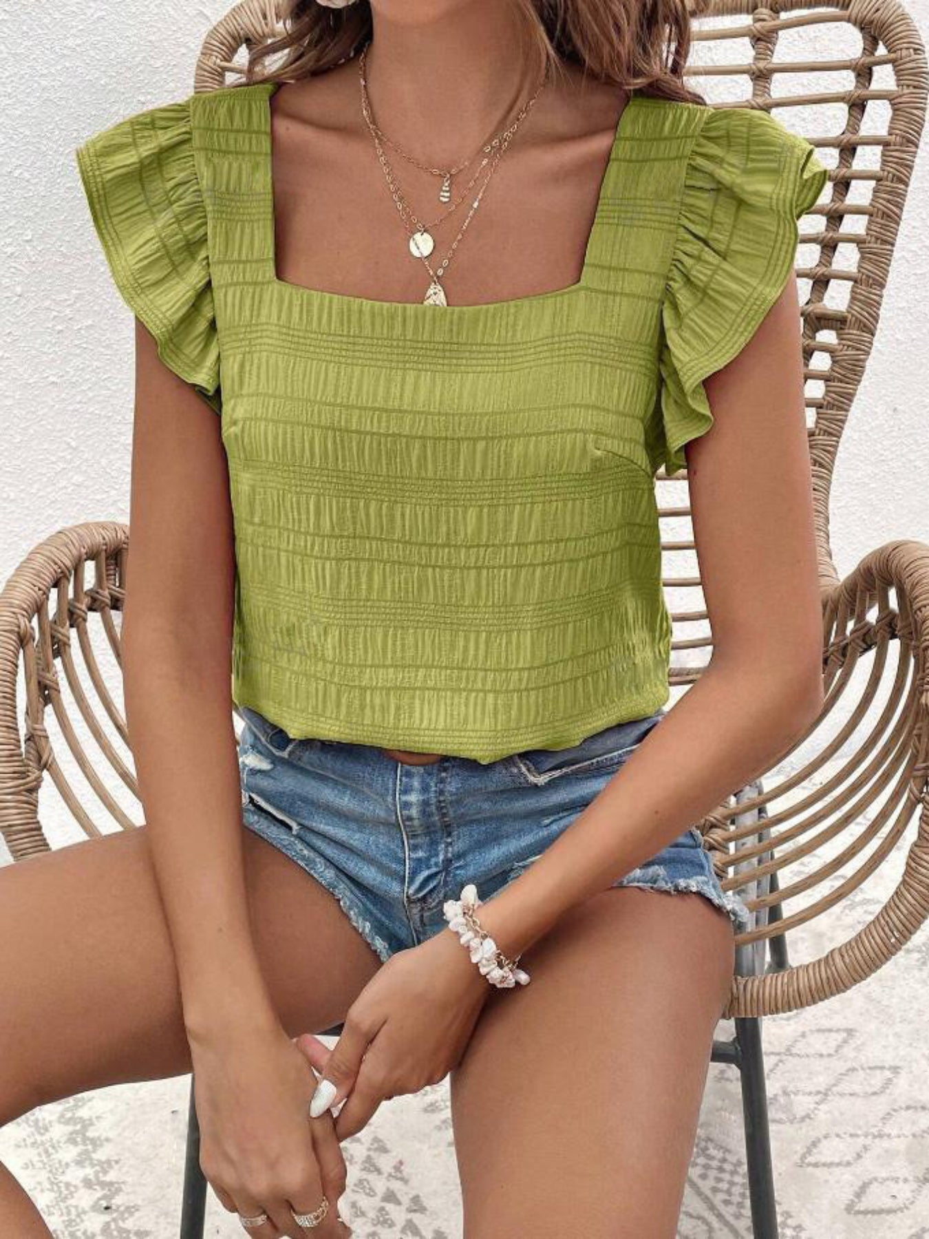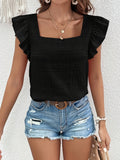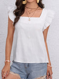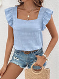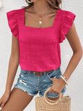 Sale Ruffle Trim Solid Blouse, Elegant Squared Neck Versatile Blouse