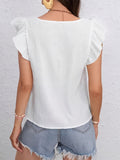 Ruffle Trim Solid Blouse, Elegant Squared Neck Versatile Blouse