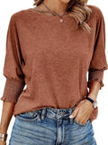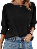 Sale Solid Pleated Trim Blouse, Casual Crew Neck Short Sleeve Blouse