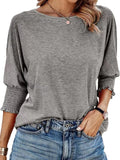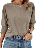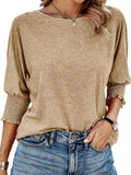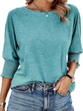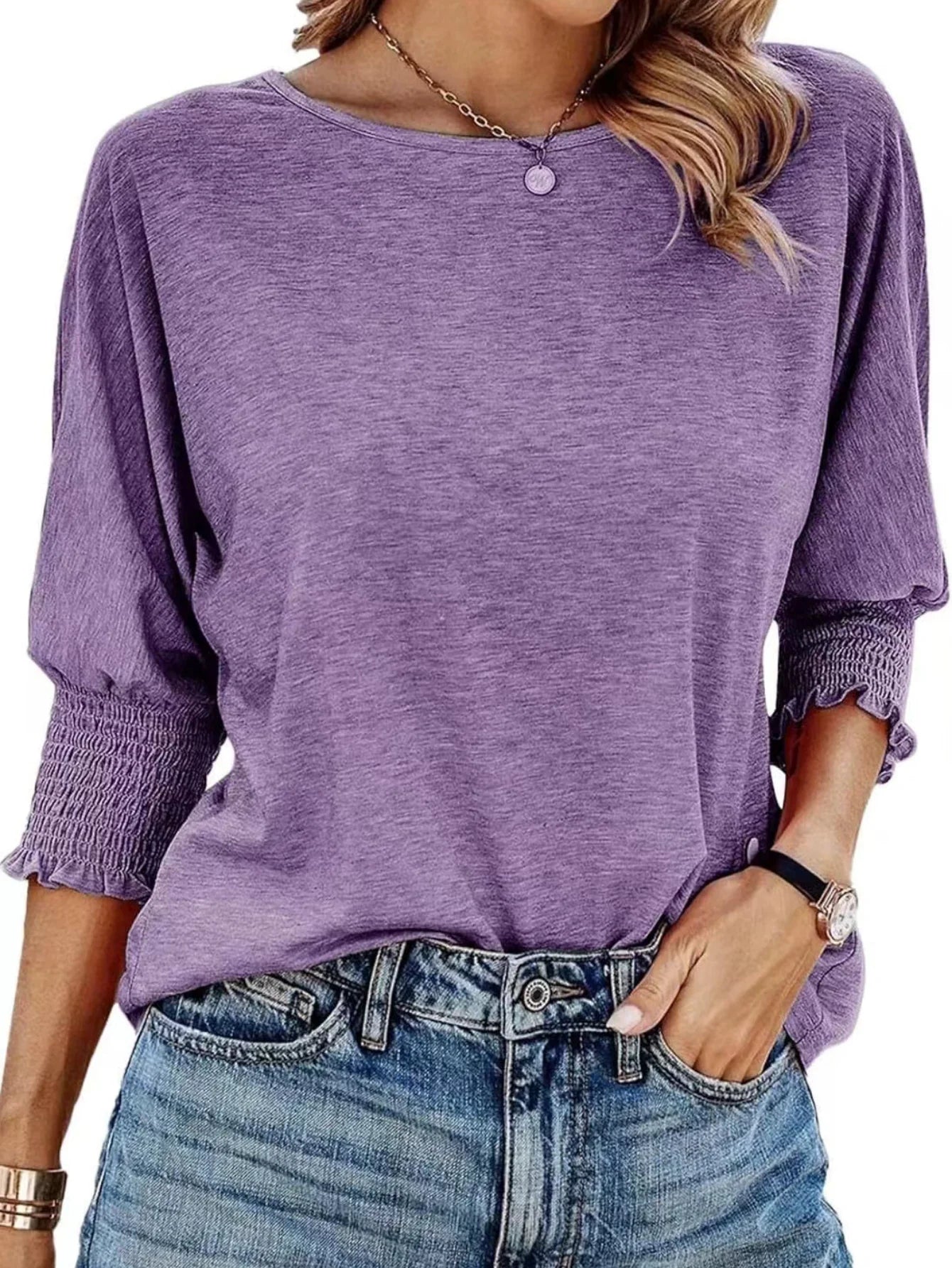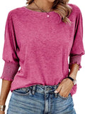 Casual Crew Neck Elegant Lavender Mid-Sleeve T-Shirt