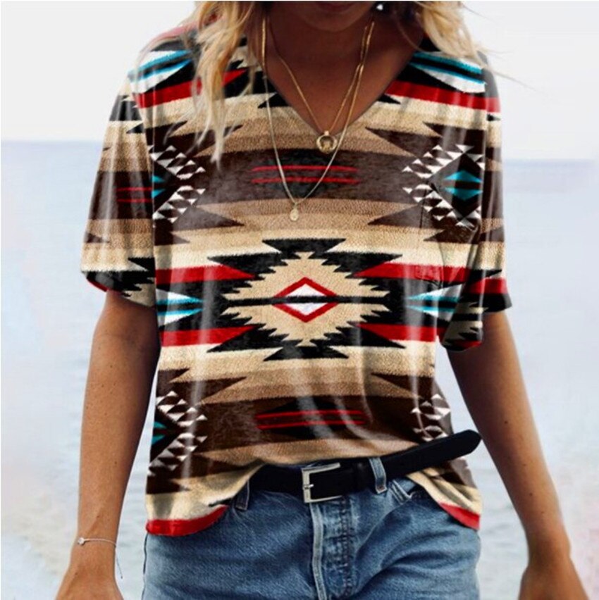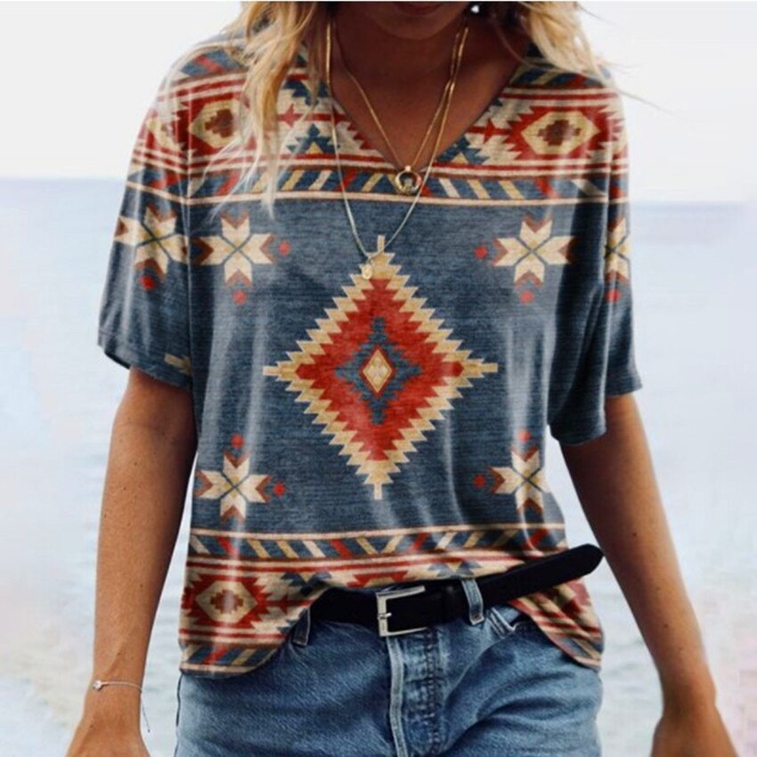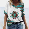 Sale Women's Feather Print Crew Neck Blouse - Casual Cut Out Short Sleeve Top