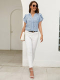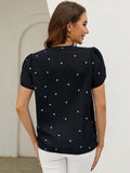 Sale Women's Feather Print Crew Neck Blouse - Casual Cut Out Short Sleeve Top